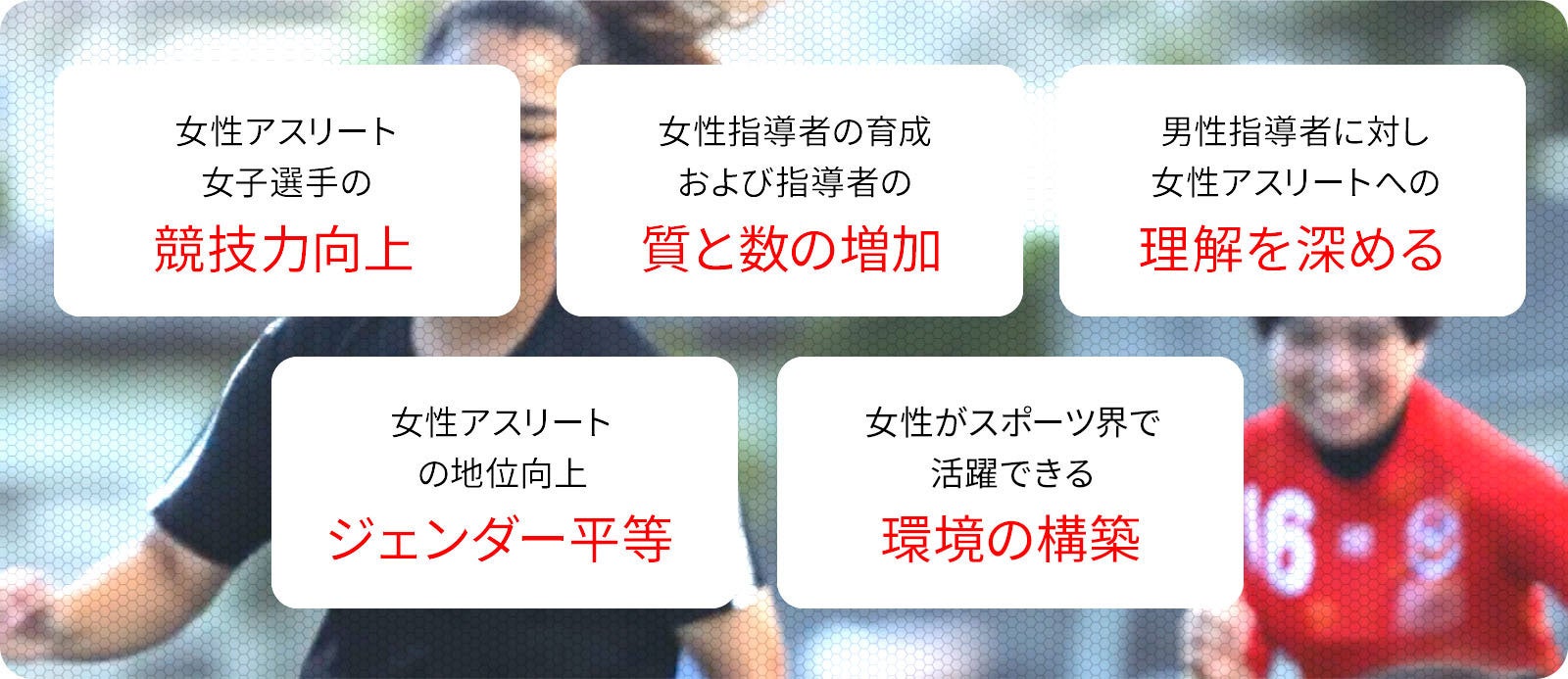 4. 女性アスリートの地位向上を支援する政策や取り組みを推進し、ジェンダー平等なスポーツ環境を整備する