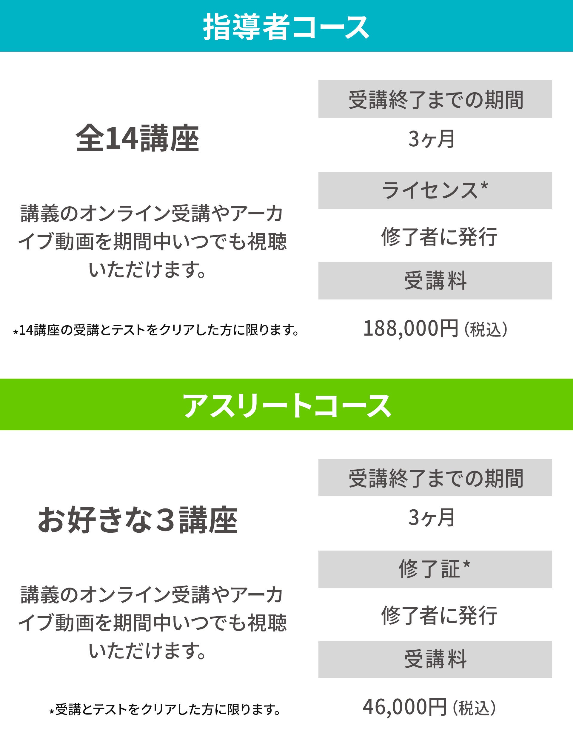 アスリートコースをご希望講座分お申し込みください。