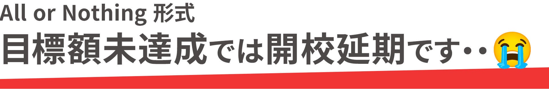 プロジェクトは All or Nothing 形式です。目標金額に満たない場合は、プロジェクトは実施されません。アカデミーの開校は延期となるため、ぜひ皆様のお力添えをお願いいたします。