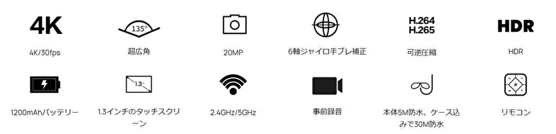 防水ケースなしでも5メートルまでの防水性能があり、サーフィンやシュノーケリング・ウォーターパークなどのウォータースポーツの撮影が楽しめます。