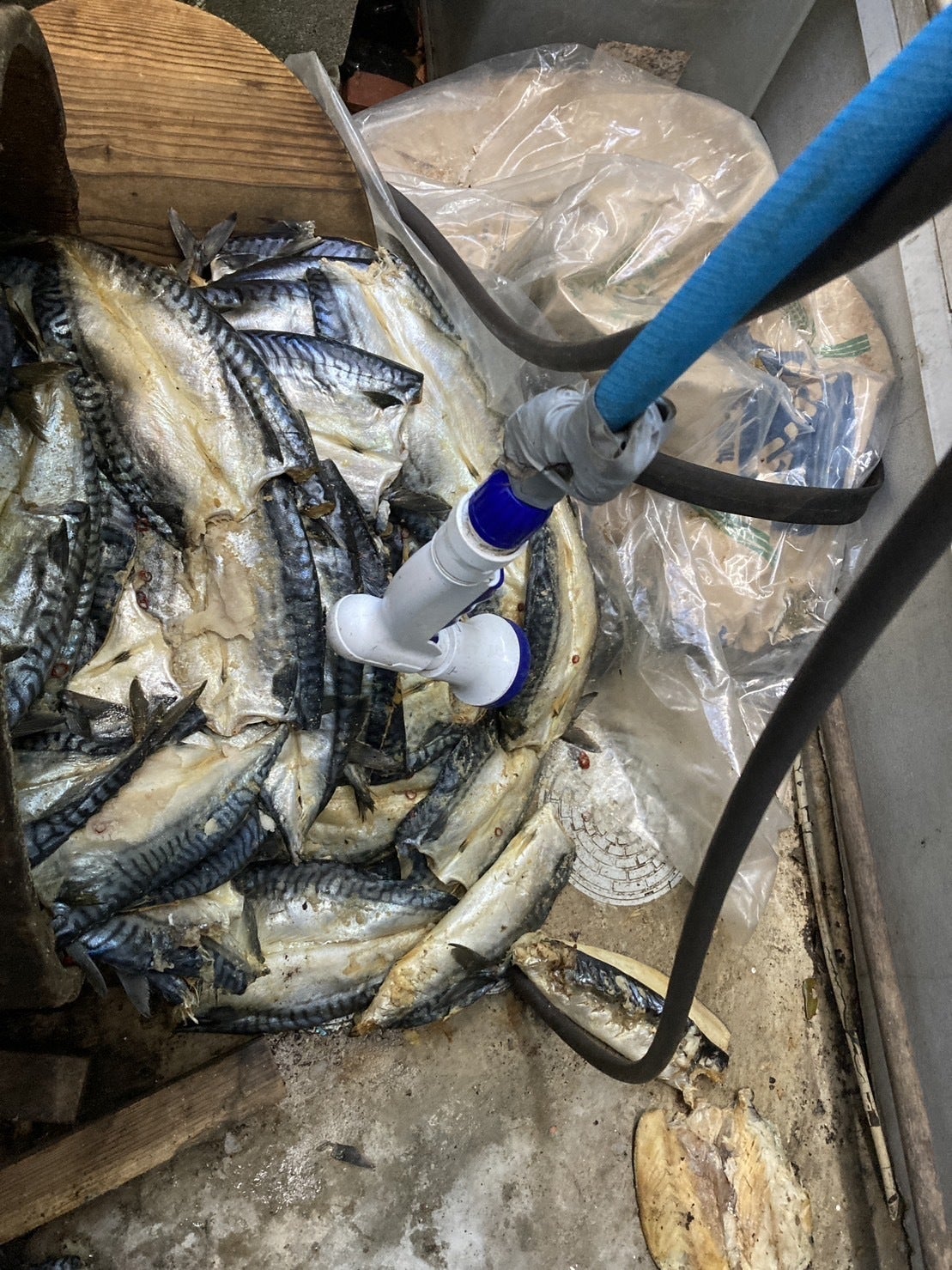 震災によって木樽からでてしまった塩サバ