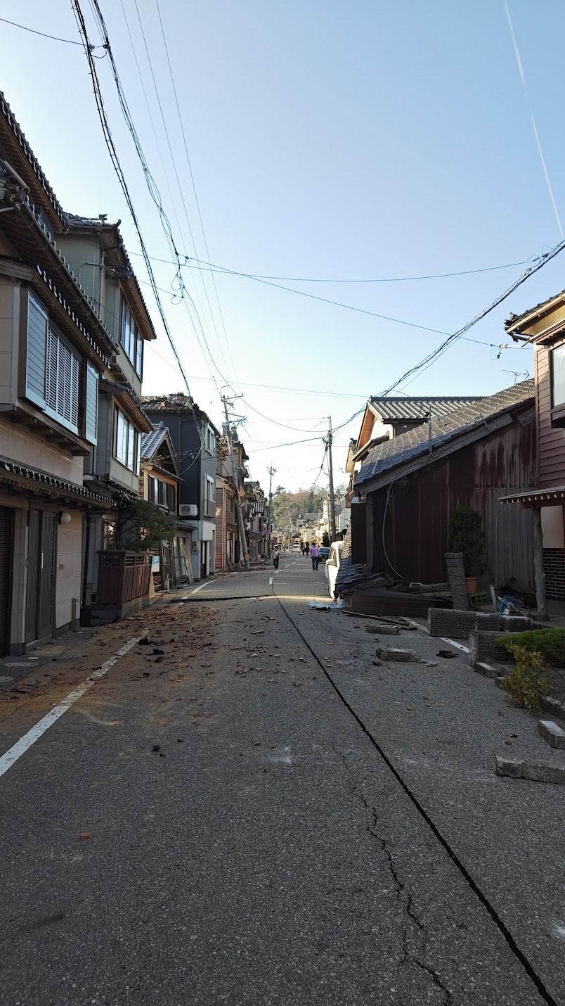 震災から一夜が明けた輪島の街並み。現在は災害復旧活動のおかげで日を増すごとに道路状況は良くなっています。