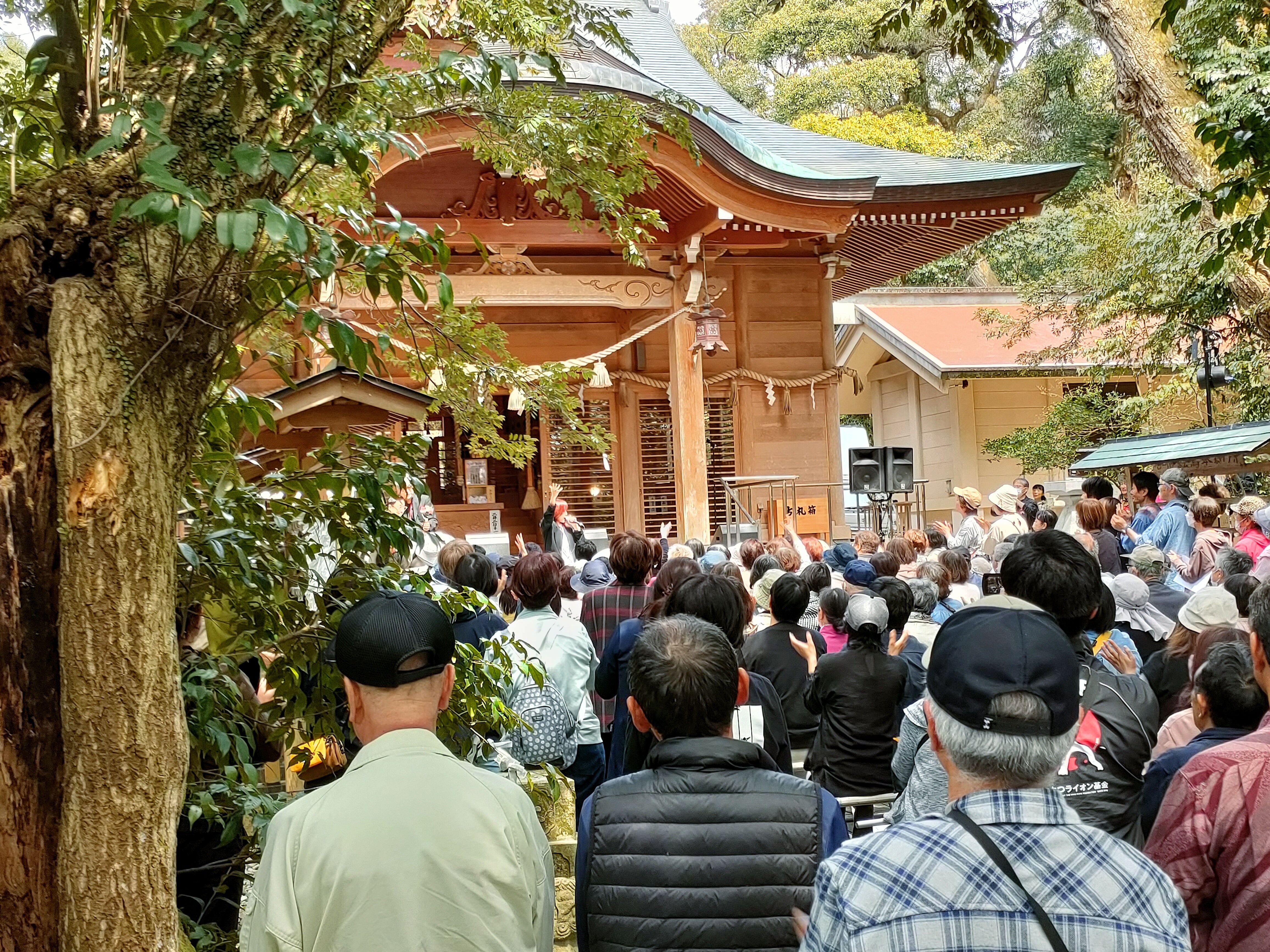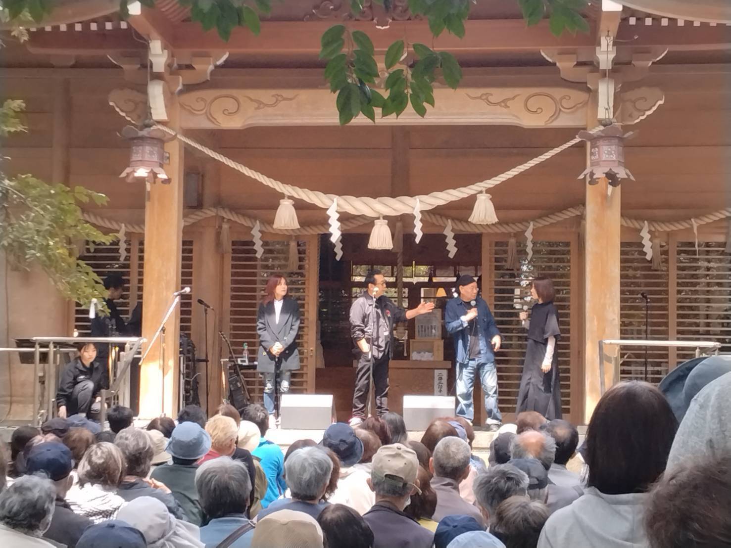 拝殿における能登半島地震の復興を祈る奉納祭の後、拝殿前において、さだまさしさんの「案山子」に始まり、半崎美子さん、相川七瀬さん、最後は泉谷しげるさんの「春夏秋冬」で7曲を奉納いただきました。