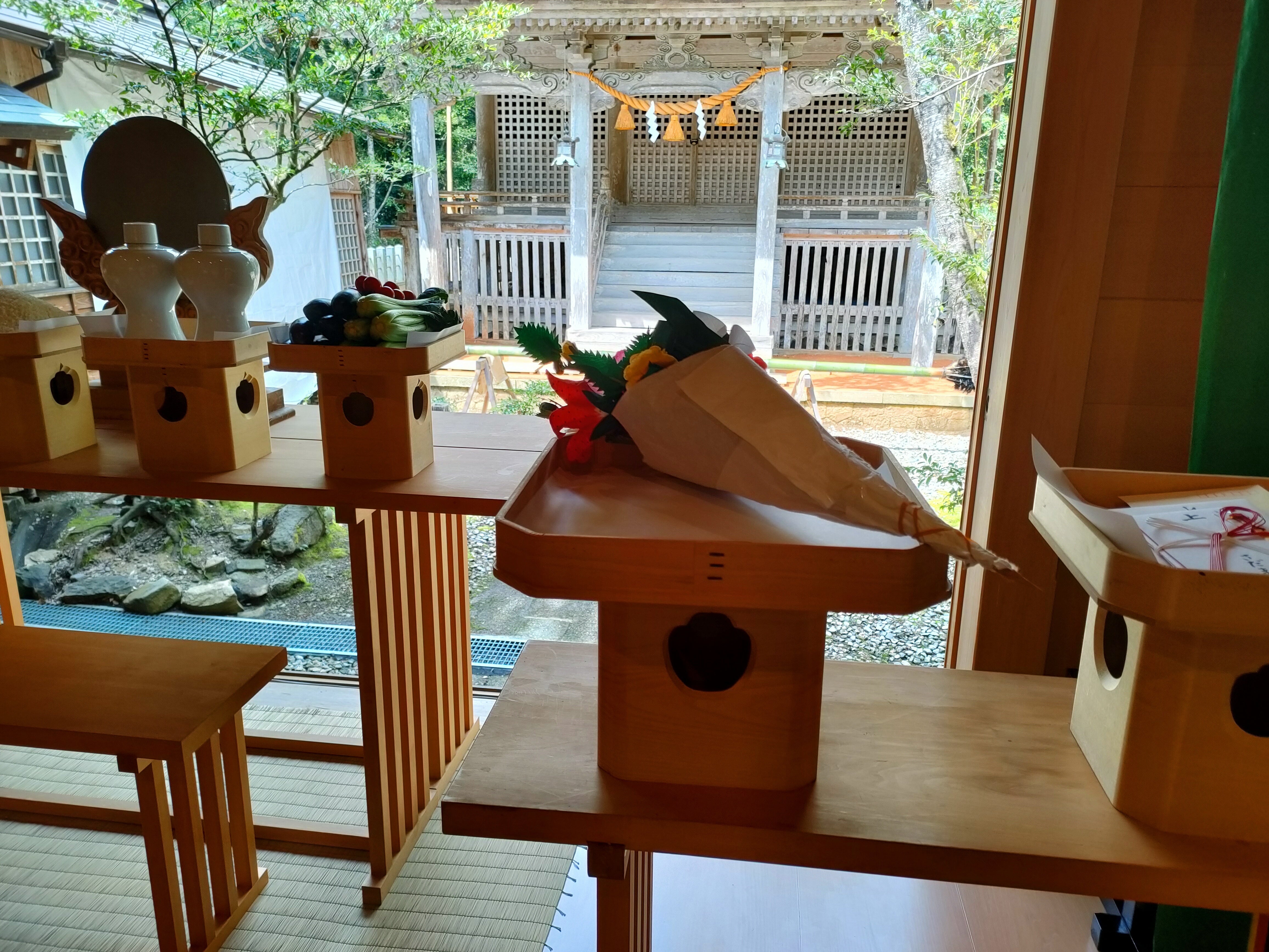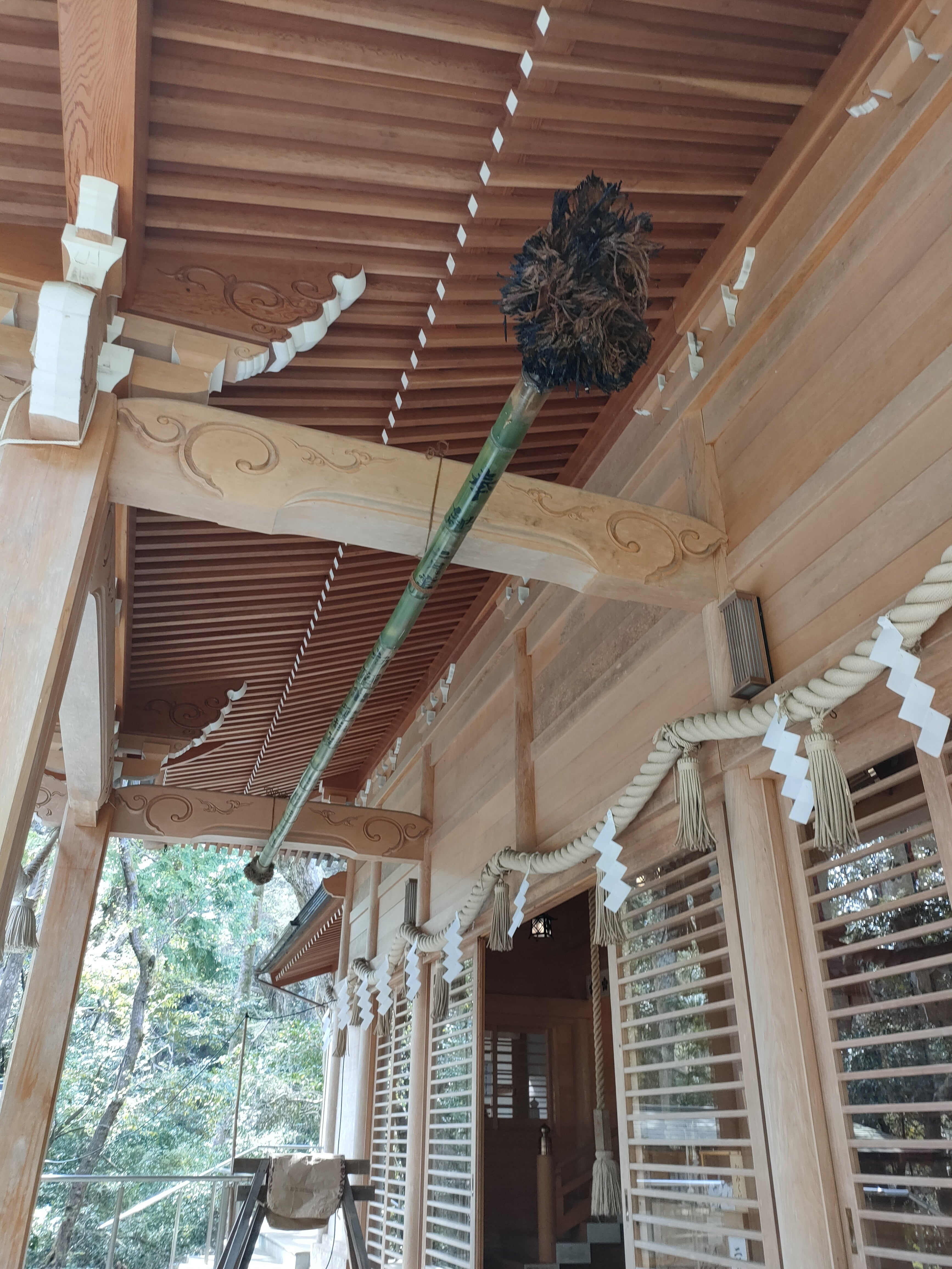 「さだまさしさん奉納のお松明」奉納祭後に拝殿前に配置させていただきました。