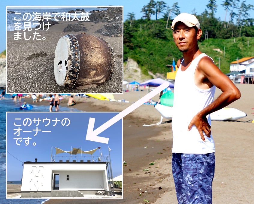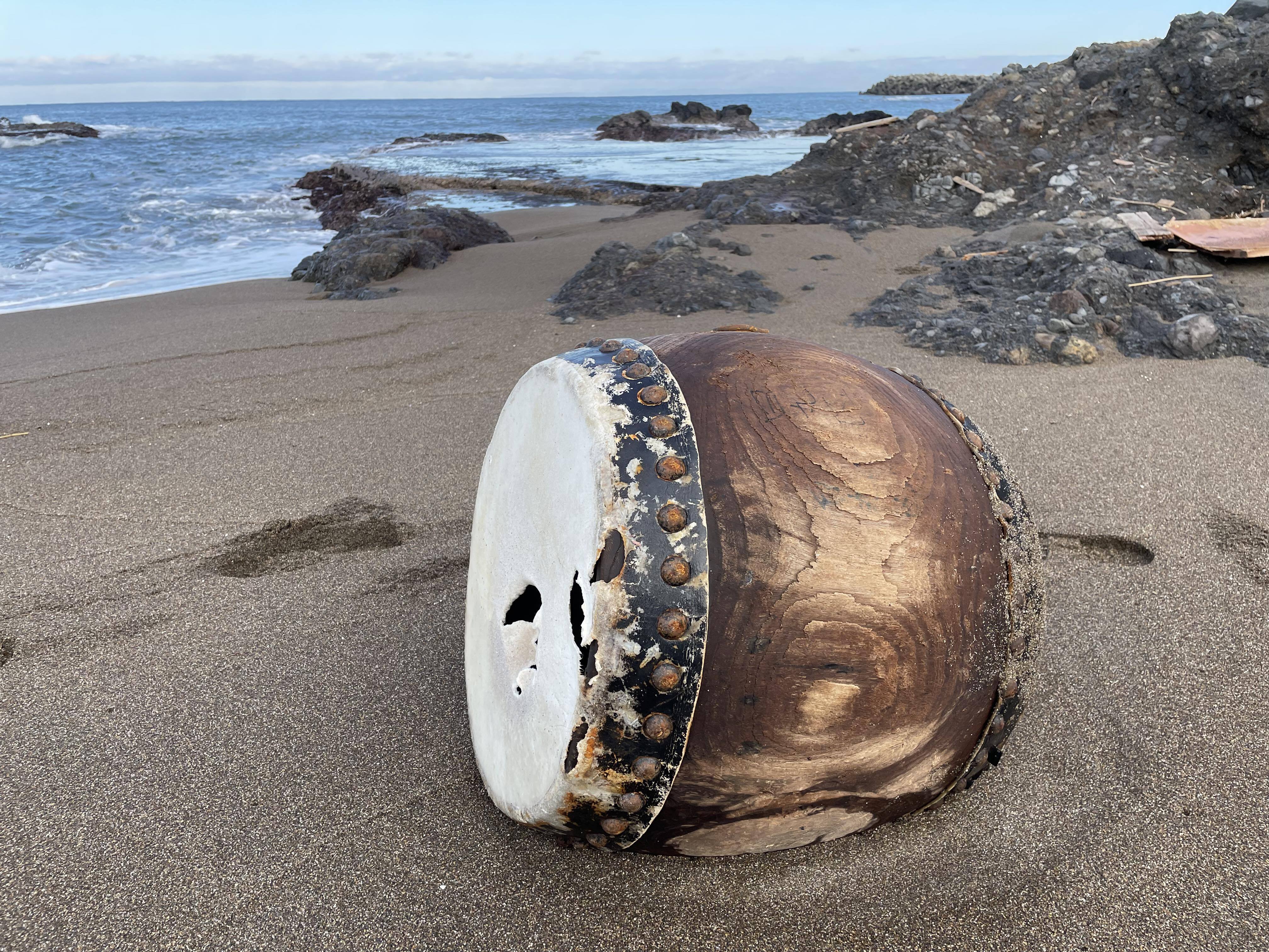 ・1月19日朝、海岸に漂着している和太鼓を見つけました