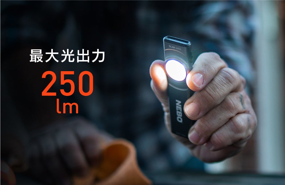 コンパクトなボディにもかかわらず、最大光出力は250ルーメンまで設定できるので、数メートル離れた場所もはっきり照らすことができます。