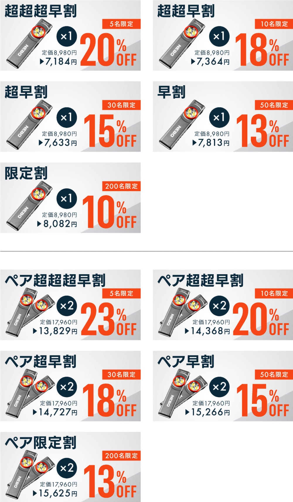 2024/04/22 12:40支援者の皆さまおかげさまで、計7名の皆さまよりご支援いただき、プロジェクトを無事に完走することができました。改めまして、応援くださり心より御礼申し上げます。この1.5月間は、応援してくださる皆さまのコメントとご質問メッセージが励みになってました^_^お手元に届くまで少しお時間をいただきますが、1日でも早く、無事に確実にお届けできるように最後まで誠意を持って対応しますので、現在集計をしております。引き続き、進捗がありましたらこちらでご報告いたします。今後ともNEBOポケットライトをよろしくお願いいたします。NEBOポケットライト正規代理店ショプラボチーム一同 もっと見る