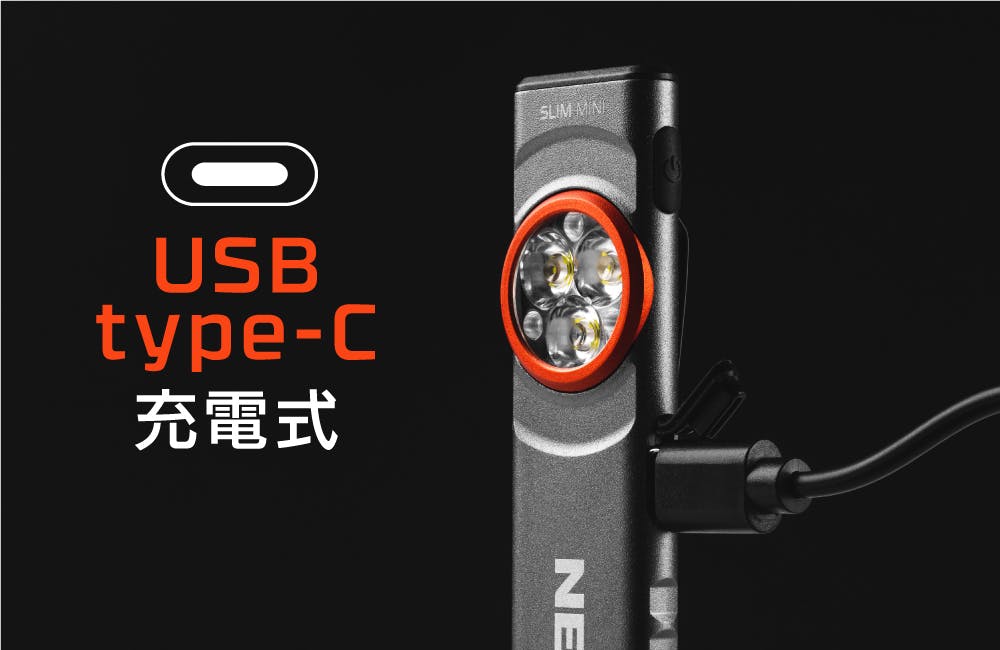 USB-C端子を備わっており、電源コードと接続して充電できるタイプです。