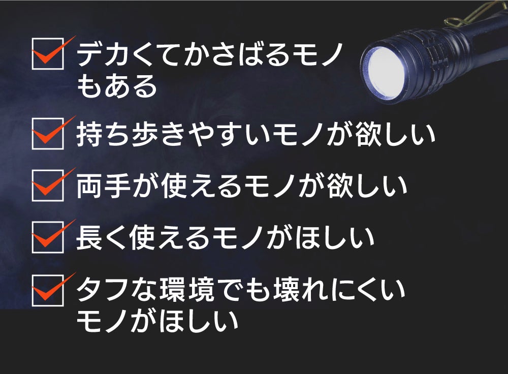 アウトドアや作業用、災害用などのシーン問わずに便利に使えるので、いざというときに備えて、LED懐中電灯を用意しておくのがおすすめです。
