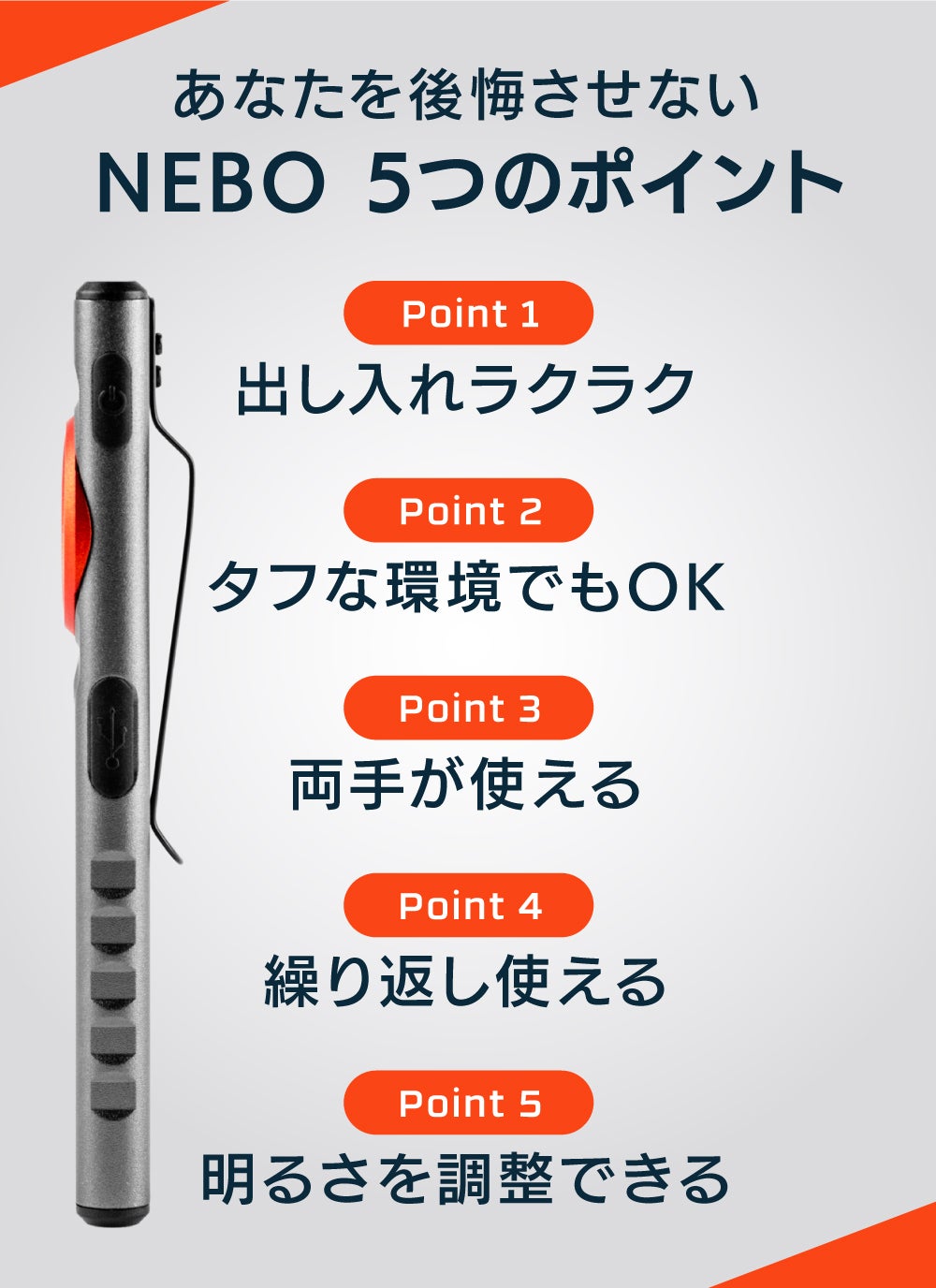 今回お届けする新商品「NEBOポケットライト」は、NEBOブランドがこれまで培ってきた技術を結集した商品になっています。