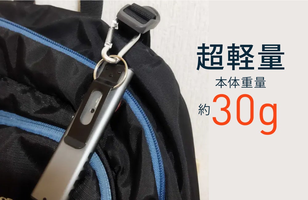 これを使うことで、自信を持ってベルトに装着したり、バッグやバックパックにも取り付けることができるので、携帯しやすさバツグン。