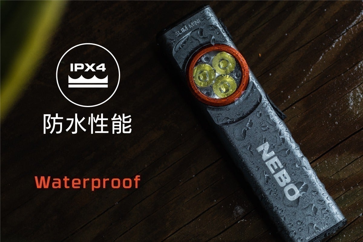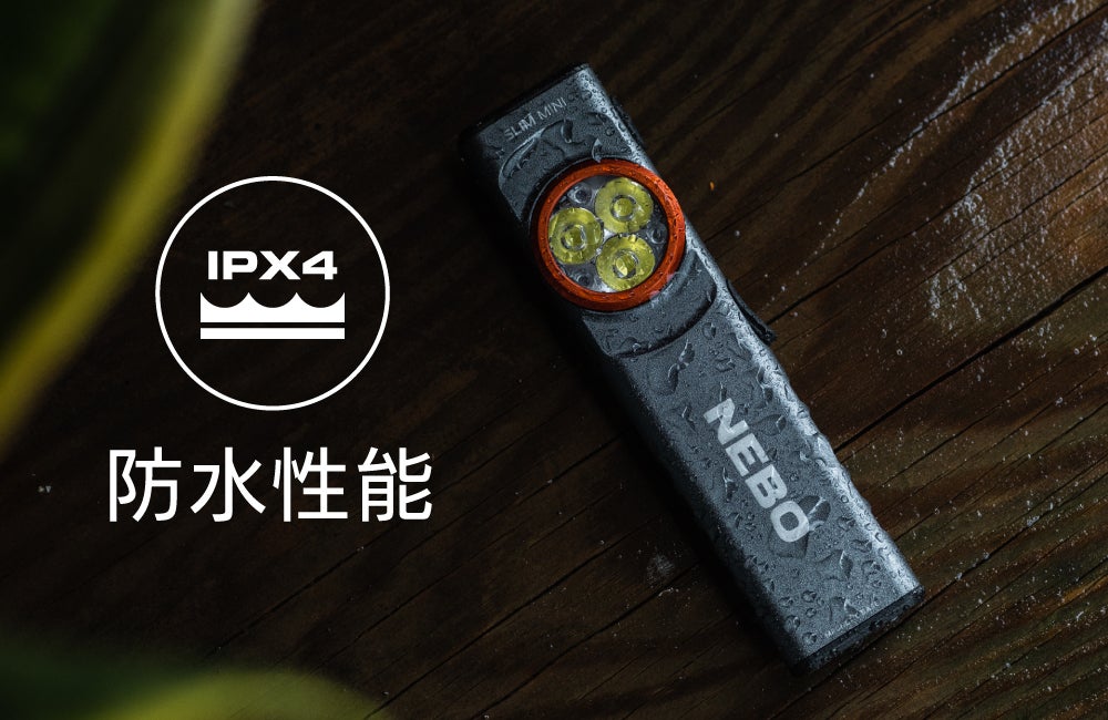 A. 日常使用の要求に耐えるように設計された NEBOポケットライトは、水しぶきに対する IPX4等級の耐水性を備えているため、日常の雨や水しぶきに心配する必要はありません。