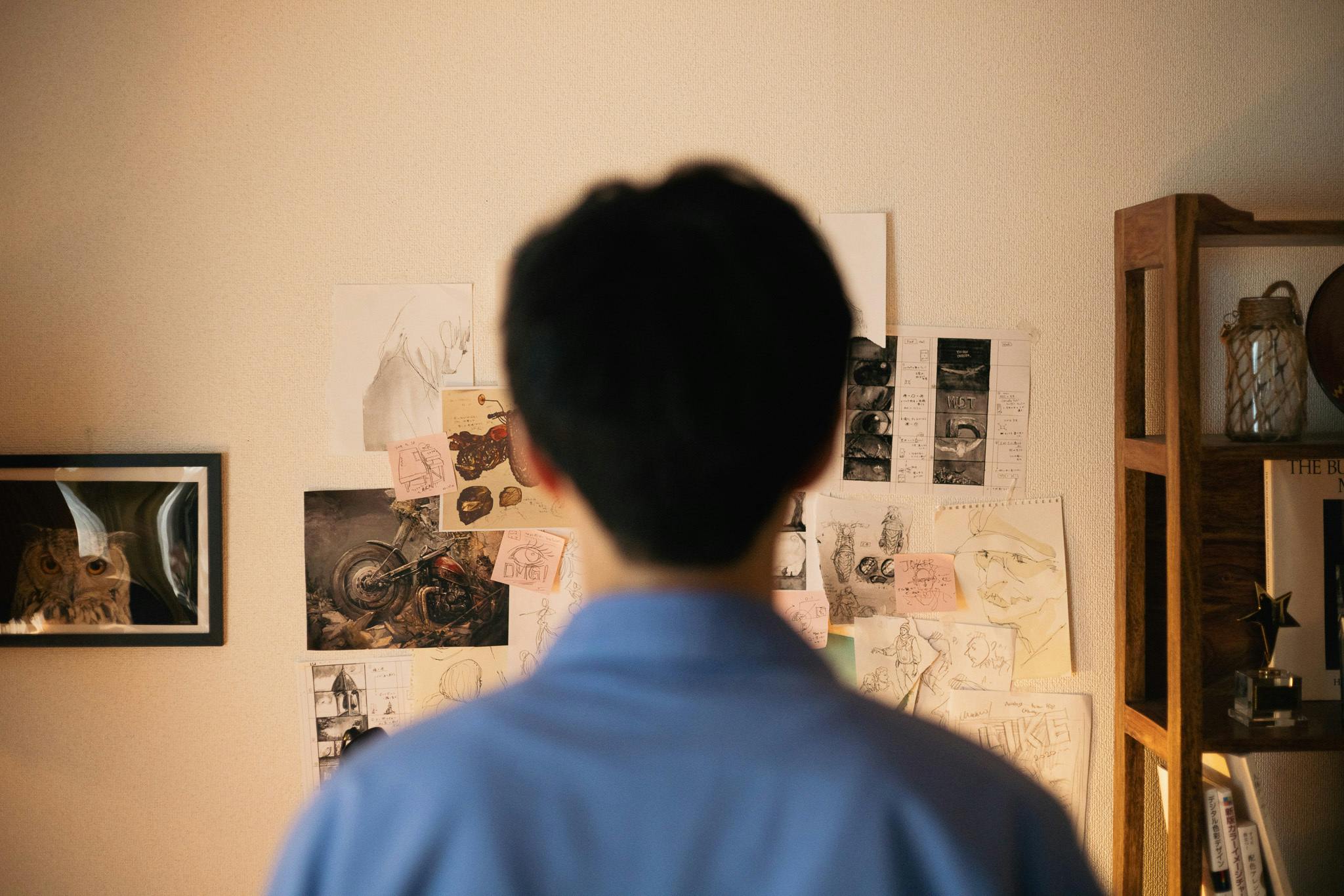 一昔前までアナログな技法で注目を集めていたイラストレーターの真人はある日、クライアントからAI時代の突入により仕事の単価低下を告げられる。徐々に、生活が苦しくなり夜勤の仕事をするまでに……。ずっと支えてくれていた彼女・まつりにも当たってしまい、挙げ句の果てに、美大時代の友人・木内に飲みに誘われるもののAIを使いこなしている木内にも当たってしまう。生活困窮に追い込まれるにつれて心の余裕もなくなっている真人は、自暴自棄になってしまう。そんな中、昔の行きつけだった喫茶店に立ち寄ったことをきっかけに過去の自分を思い出し……。