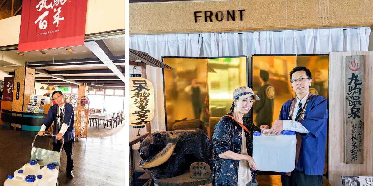 そして早速、仕込みに使う支笏湖のお水を調達しに、丸駒温泉旅館さんへと出発。