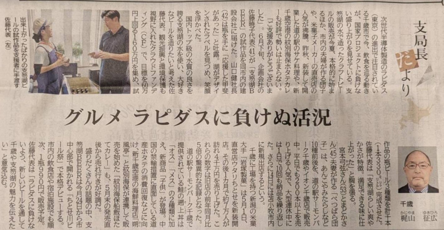 ラピダスさんのお名前がはいっている記事に支笏湖ビールがあるとは。。。感慨深いです!w