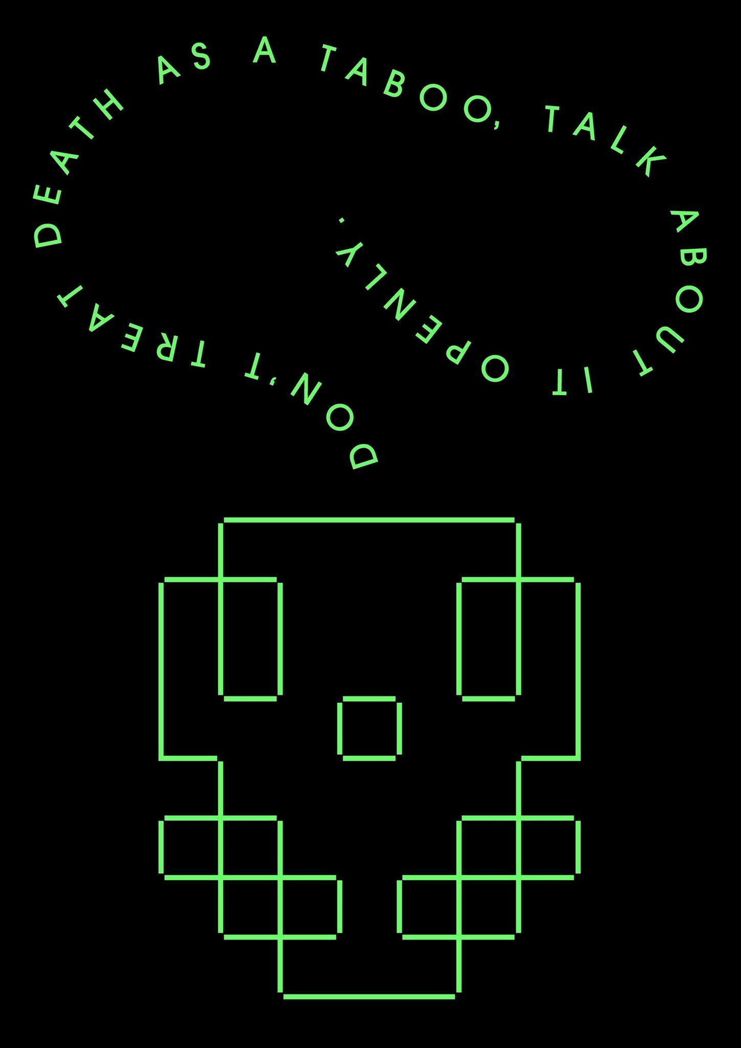 既存の死生観とは別のロジカルな視点で捉えてみようというイベントの想いは、死のイメージであるドクロモチーフを起用しつつも、デジタル化することで現代的なアプローチであることを表現。