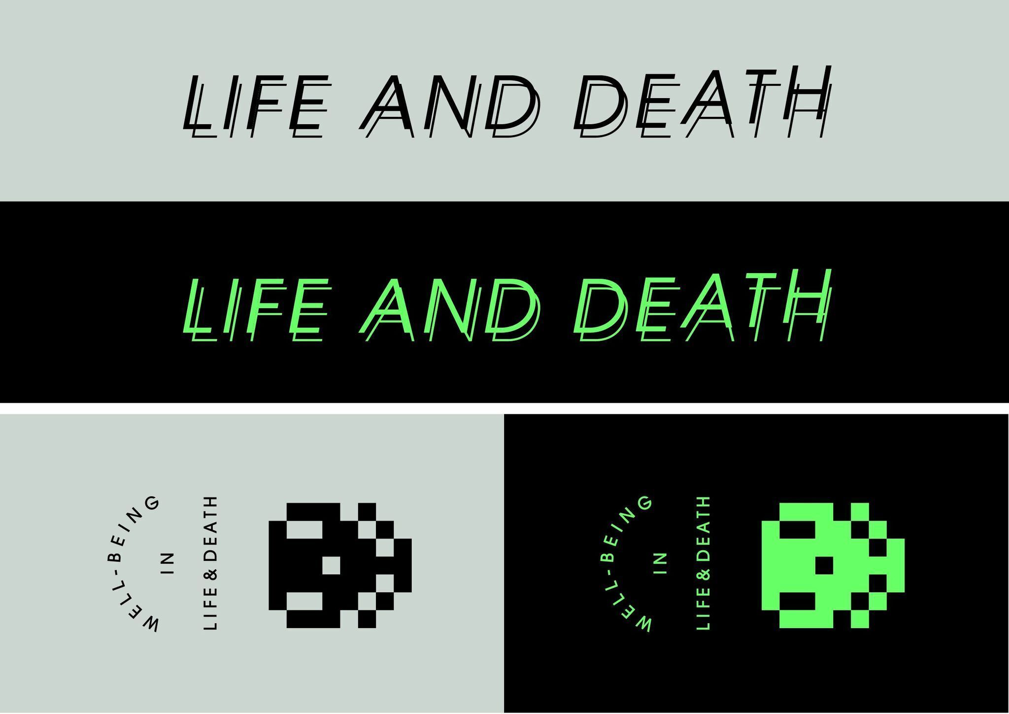 またイベントのテーマである「生も死もウェルビーイングに」の言葉をグラフィックの中に落とし込んで、Deathという単語から連想される怖さとは違う印象を伝えるべく、タイポグラフィやグラフィックで軽やかに表現しています」
