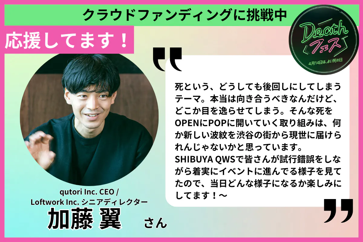 qutori Inc. CEO / Loftwork Inc. シニアディレクター 加藤翼さんから、応援メッセージをいただきました。ありがとうございます!