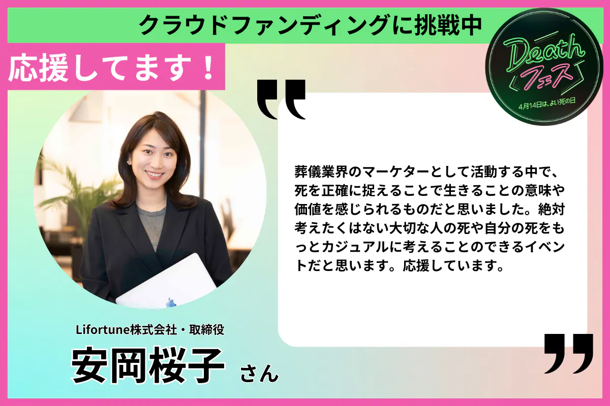 Lifortune株式会社・取締役 安岡桜子さんから、応援メッセージをいただきました。ありがとうございます!