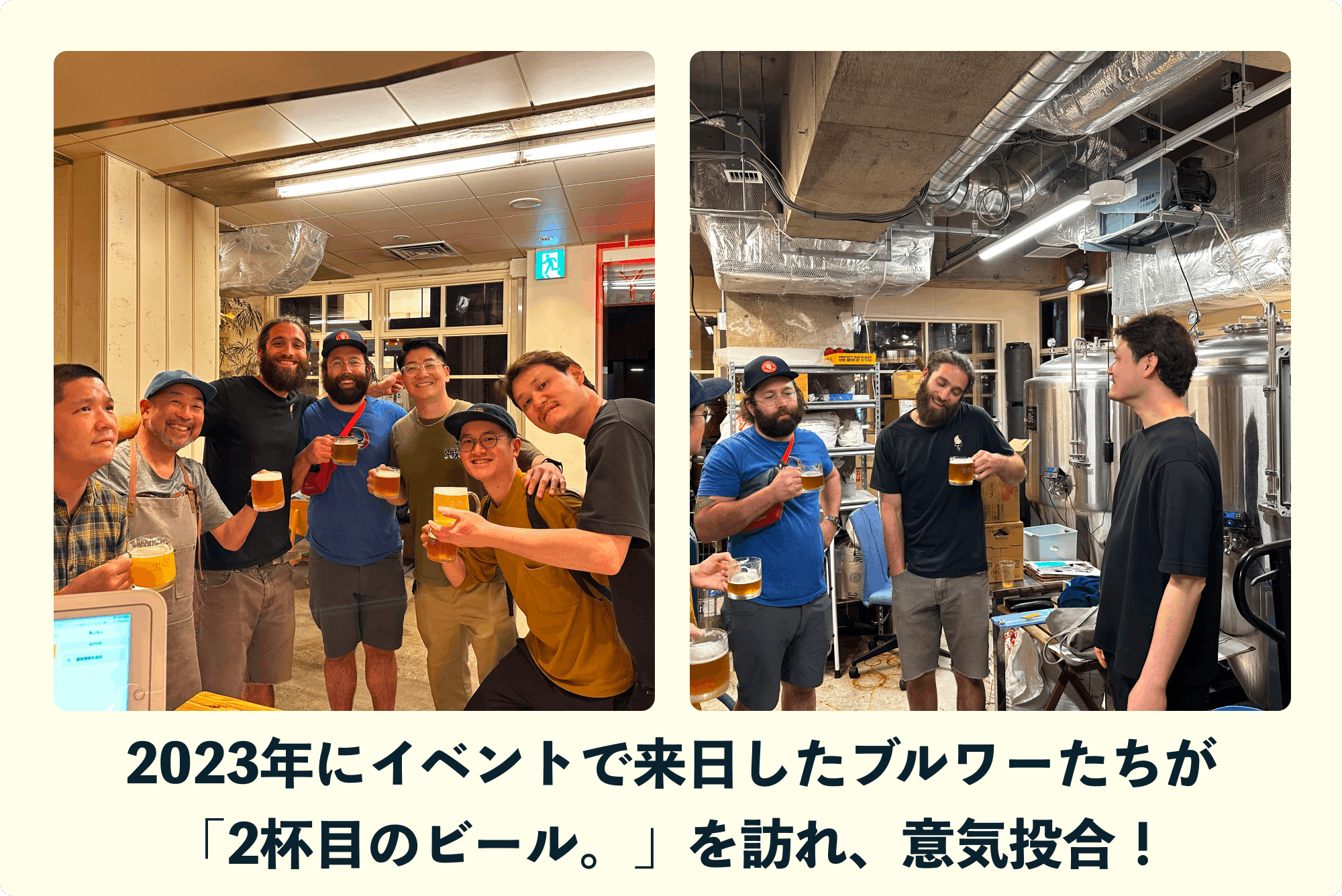 きっかけは、2023年春のクラフトビールのイベント「Food to Fuji」でした。イベントのため来日していたCulmination Brewingの醸造長Danielが「2杯目のビール。」を訪れ、気に入ってくれたことをきっかけに、コラボレーションビールのプロジェクトが始動しました。