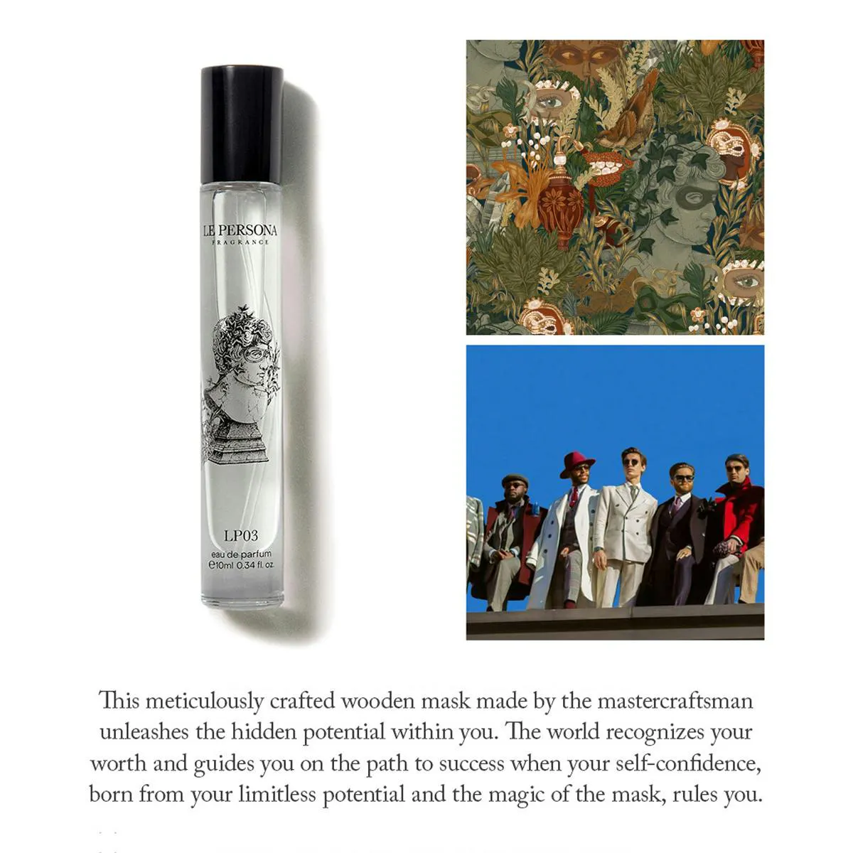我々にとって香水には「どのような意味」があり、そして「どのような影響を与えるのか」という疑問から、ル ペルソナ(LE PERSONA)は始まりました。 古代ギリシャの俳優達が、担当する役の特徴や性格を表すために被った仮面を意味する「ペルソナ」。その仮面の物語からブランド名「ル ペルソナ」は作られました。 仮面は通常自分自身を隠しますが、時には自分自身をもっと明らかにする両面性を持っています。つまり、仮面をつけることで他人の視線に意識を向けず、純粋に自分の内面に集中して、素直な自分になる事ができます。 ル ペルソナはその仮面のように、自分を自分らしく表現することができるアイテムとして、香水を開発する事にいたしました。
