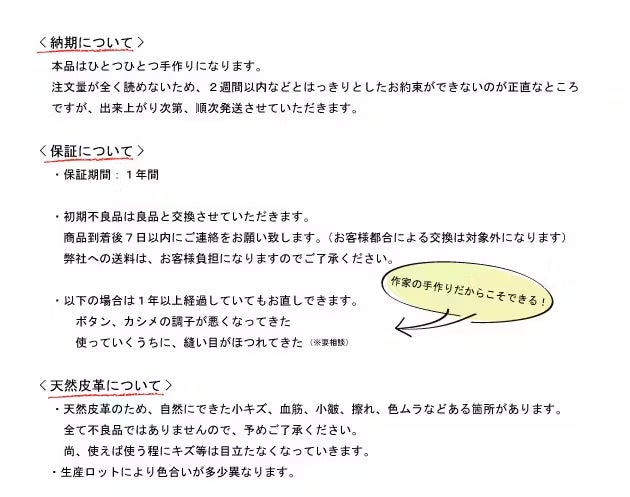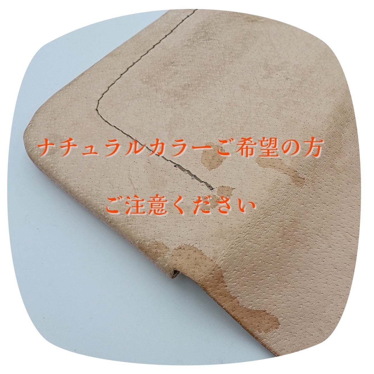 雨などによって濡れるとシミになりやすく、汚れも目立ちます。扱いに工夫、慣れが必要なカラーがナチュラルです。そのことをご理解頂いた上で、ご注文いただければと思います。素朴な革を育てるのが好きな方、どちらかというと革の扱いになれている革上級者さん向けになります。