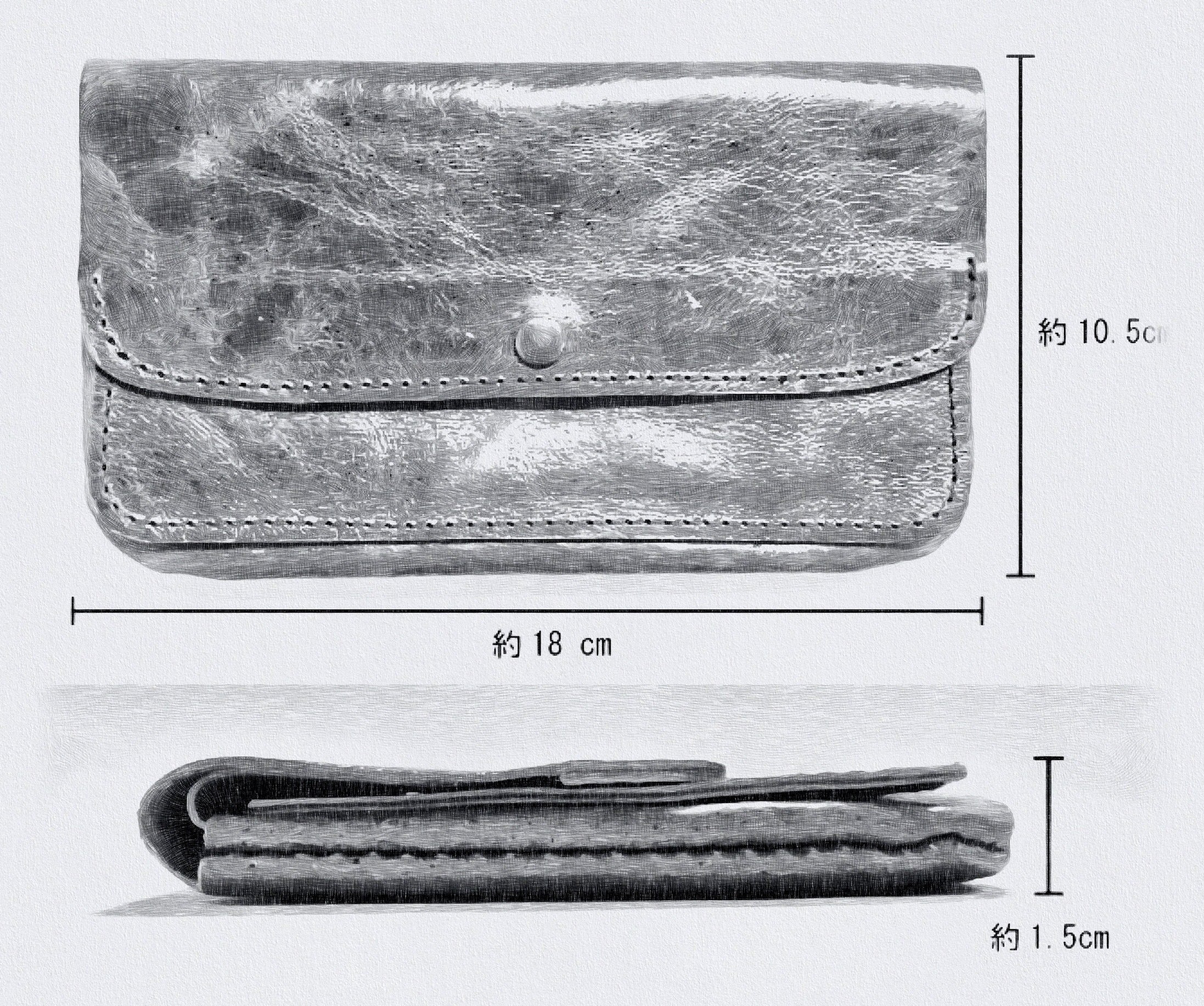 革はどうしても重たいもの。市販のお財布でも軽いものと言うのは実際にはよく販売されてますが、そのほとんどが、見えないところで生地を使ったり、革自体は非常に薄いものを使ったりと工夫してあるものがほとんどです。本作品は全て本革のみ製作しております。1mm以上のしっかりした革でありながらも、「軽い」を実現できたのは豚革のおかげ。