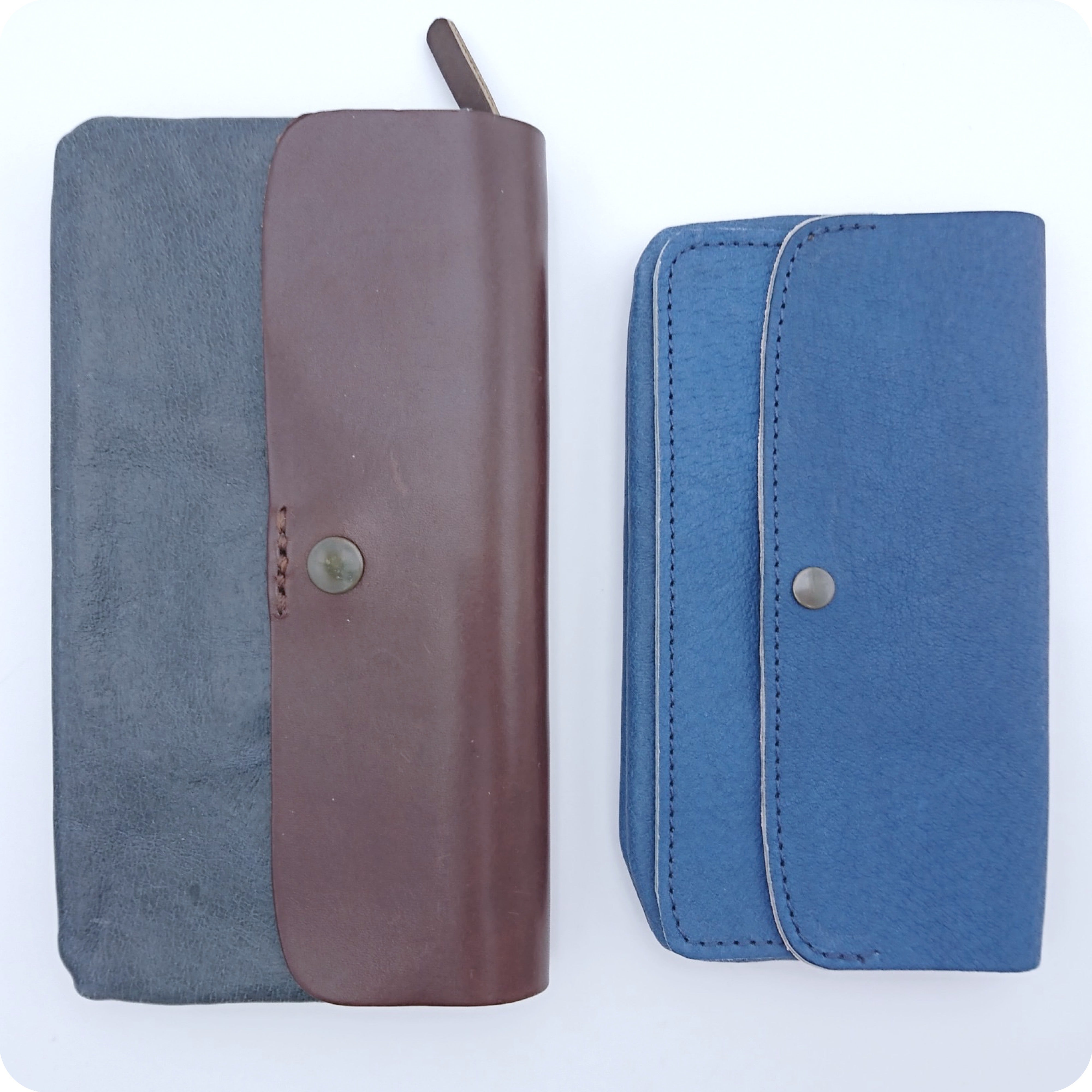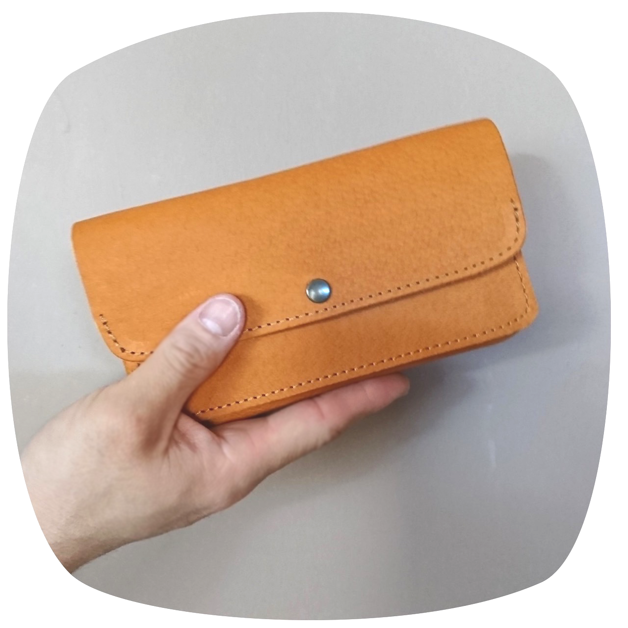 革はどうしても重たいもの。市販のお財布でも軽いものと言うのは実際にはよく販売されてますが、そのほとんどが、見えないところで生地を使ったり、革自体は非常に薄いものを使ったりと工夫してあるものがほとんどです。本作品は全て本革のみ製作しております。1mm以上のしっかりした革でありながらも、「軽い」を実現できたのは豚革のおかげ。