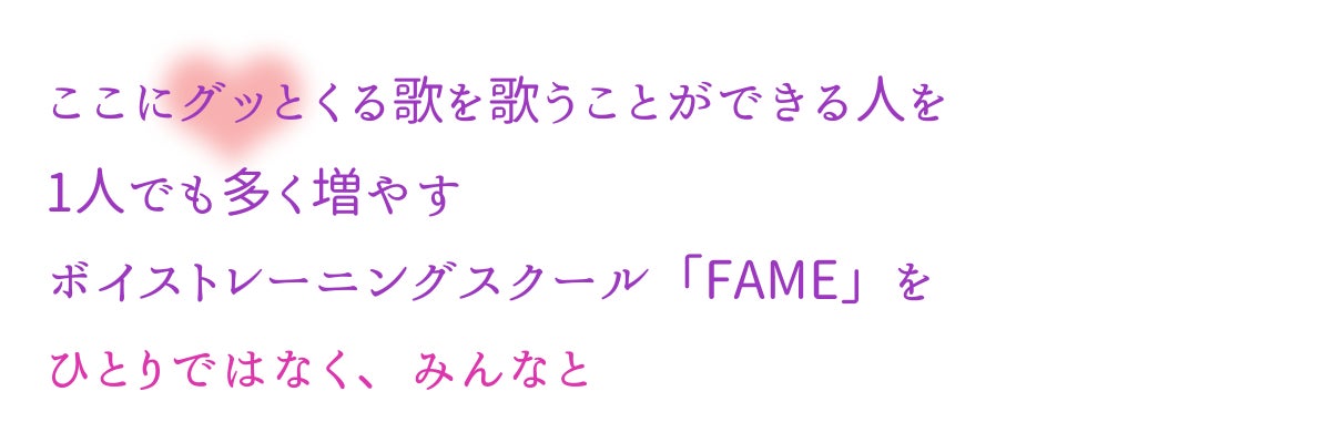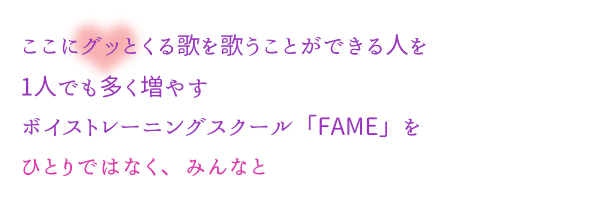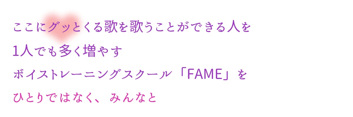 スクールのモットーは「ここにグッとくる歌を歌うことができる人を1人でも多く増やす」。「FAME(フェーム、名声)」を浴び、日本だけでなく世界(インターナショナル)に響く歌を歌えるように…という思いから、この名前を付けました。
