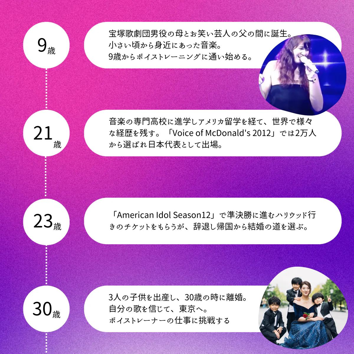 私がシンガーとして活動していた時に、海外でのコンテストのプレッシャーなどで、心身ともにしんどいとき、国際電話をかけてくれて、支えてくれたのがボイストレーナーの先生でした。