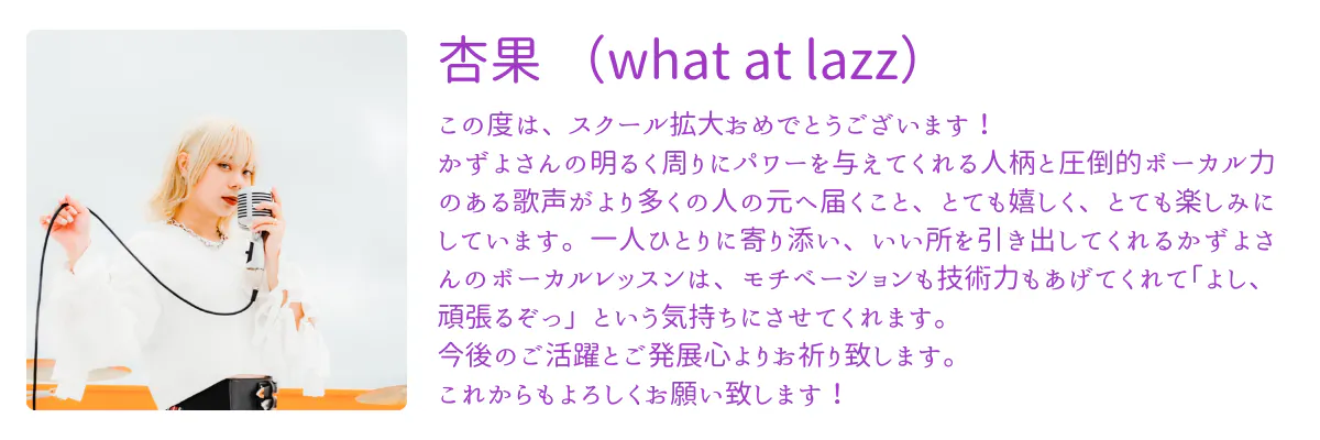 レッスンはちょっとハードルが高いけど、ボーカルスクールを応援したい!と思ってくださっている方に向けた「応援プラン」など、多数ご用意しました。