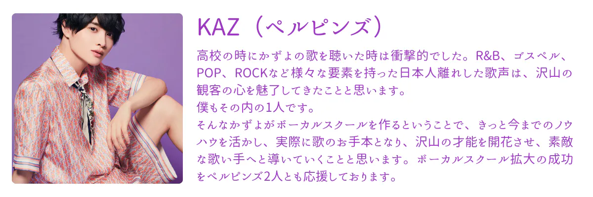 集まった資金は、Kazuyoが主催するボイストレーニングスクール「FAME International Vocal School」のスケール資金に活用させていただき、スクール生をはじめとした歌う人たちへと還元していきます。
