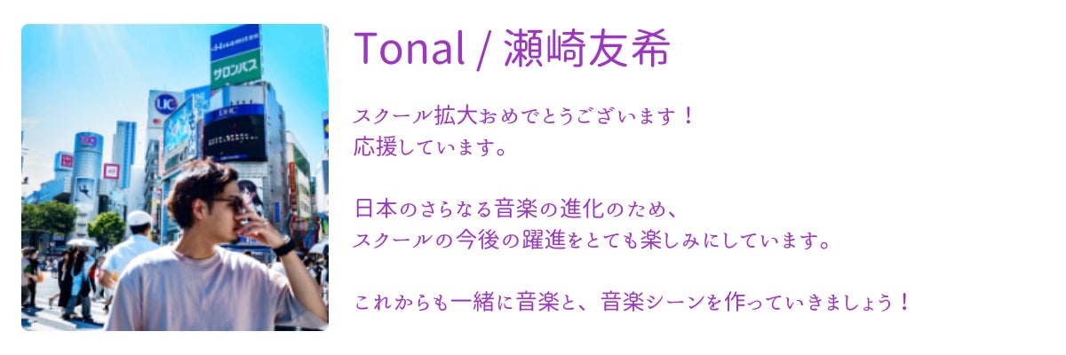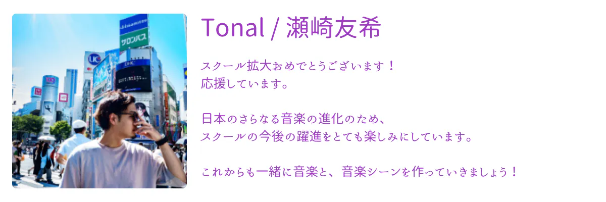 最後に、このプロジェクトに向けて、生徒や音楽を一緒に作っている仲間たちから、応援コメントをいただきました!