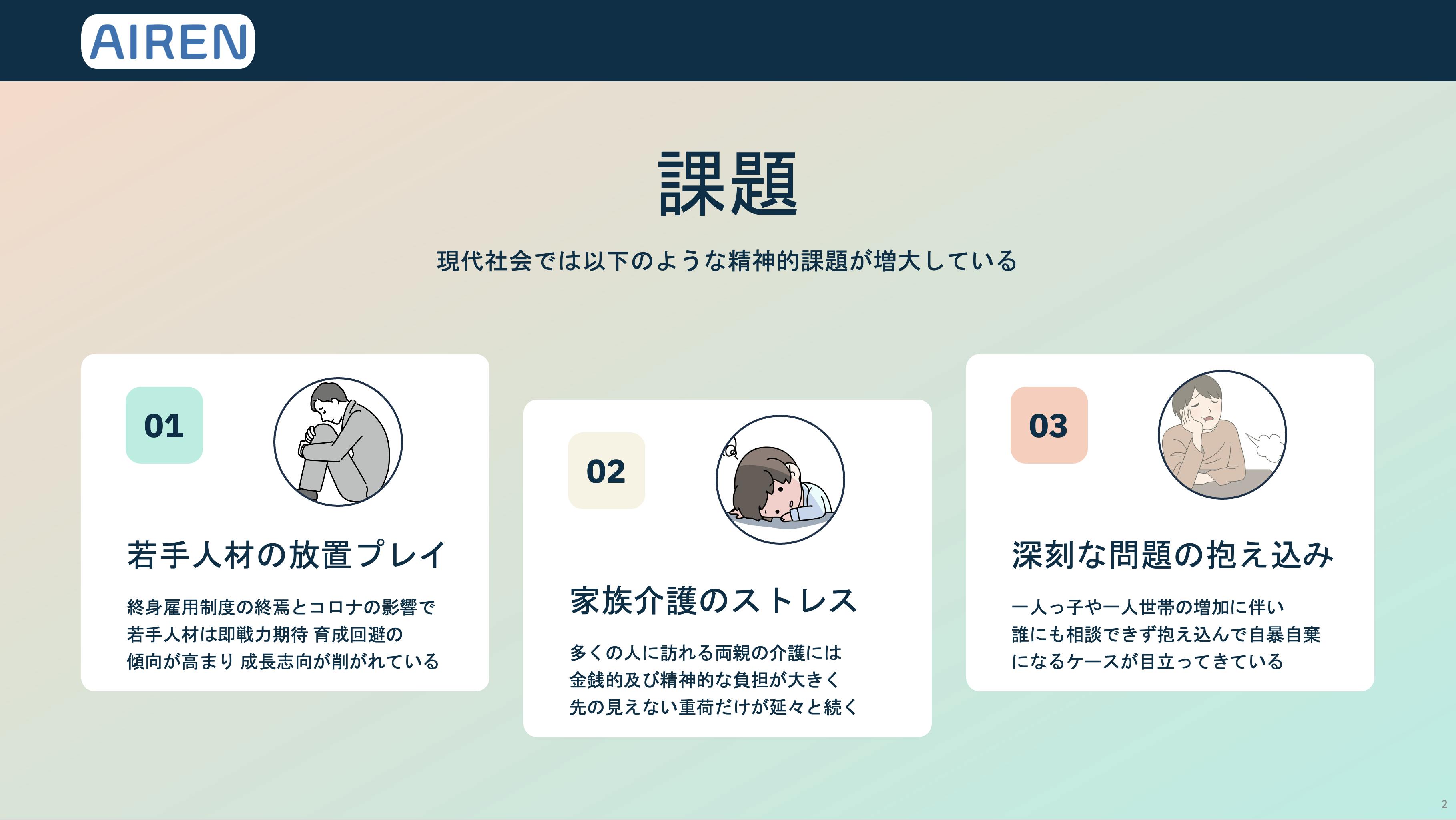 クラウドファンディングの募集期間終了も間近に迫ってまいりましたが、今一度本プロジェクトの趣旨をお伝えいたします。人類の構造的な課題として「孤独」と「介護」が今後100年は続くと思い、ご多聞にもれず私自身強烈に悩まされてきましたが、新たに登場したAIにはメンターの力が備わっていると感じました。おそらく昔であれば仏教伝来に匹敵するものだと思います。