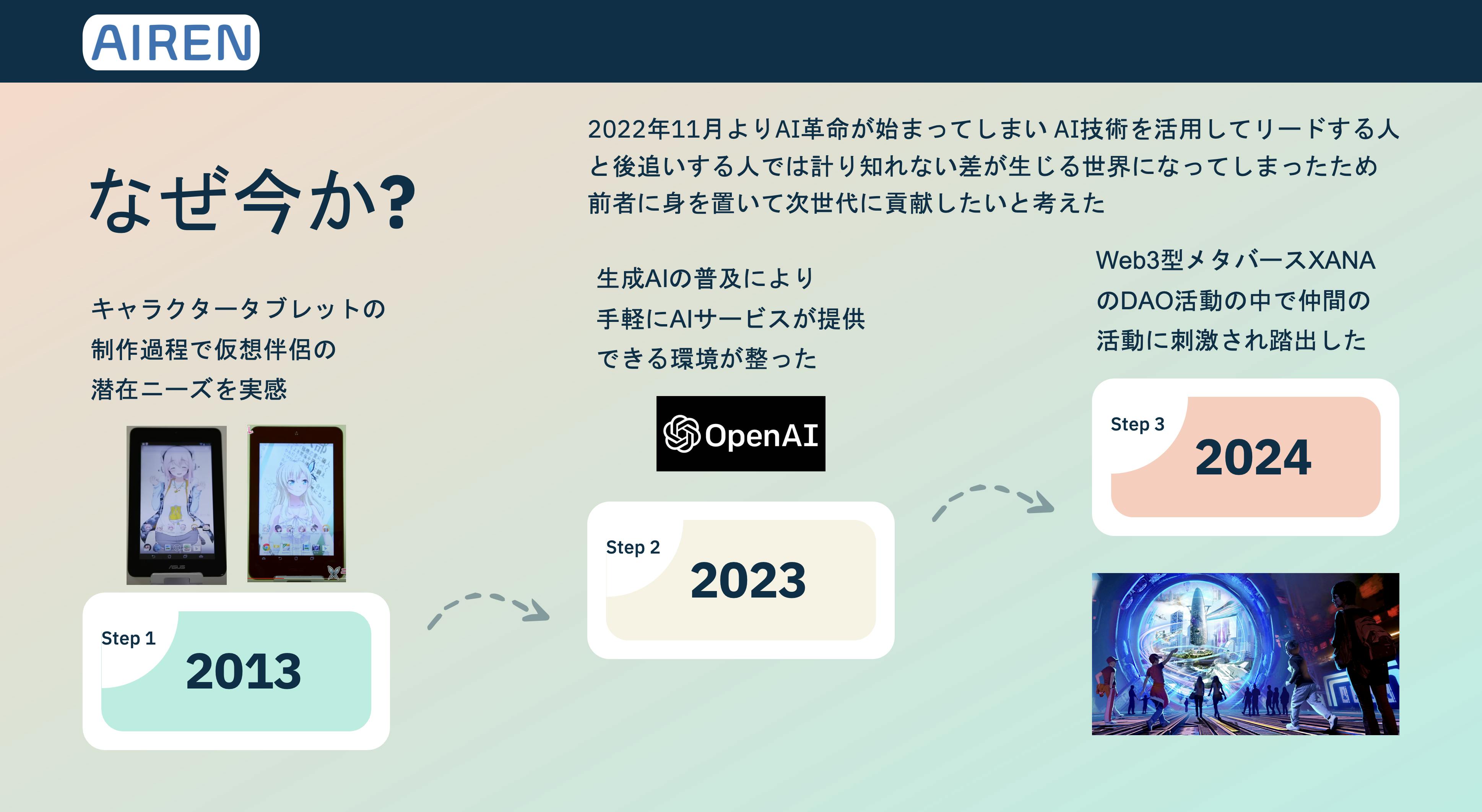 NFTは6月25日を目処に配布できる見通しがつきました。また、AIアバターの方もAWS上でのテキスト会話はできています。更にキャラクターらしさなどの実装やリップシンクなどが実装できれば、当初想定した仕様レベルには達成できる見込みです。