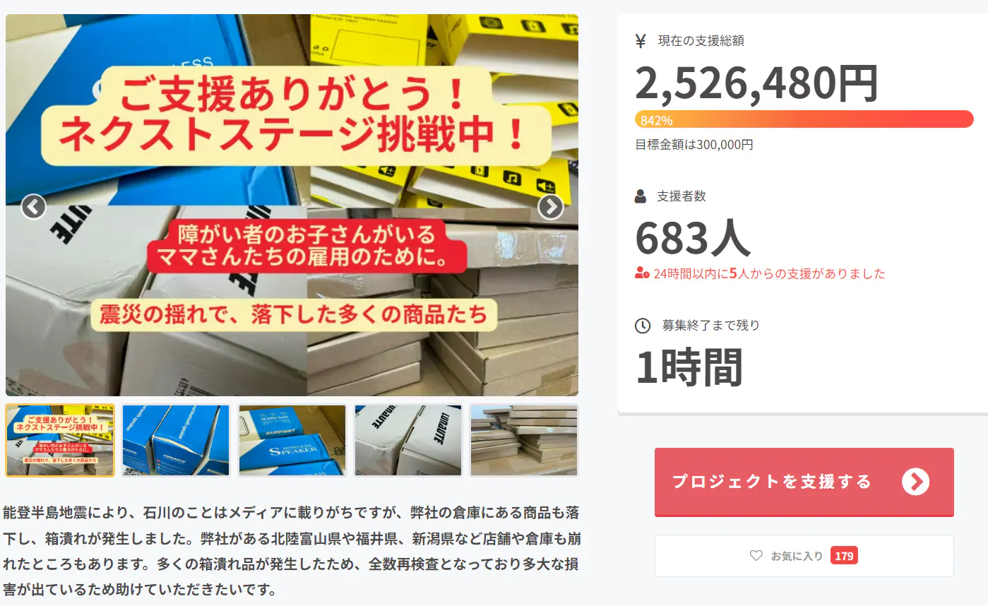 このプロジェクトは、単に商品を販売するだけではありません。これは、地震によって生じた困難を乗り越え、被災地の復興を支援し、地域社会に貢献するための取り組みです。私たちは、箱潰れ商品を有効活用し、再建を行います。また、内職ママさんたちの雇用を維持することで、彼女たちとその家族の生活を支え、地域経済の活性化に貢献します。