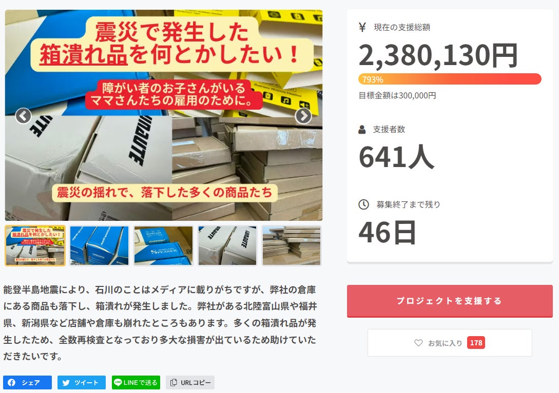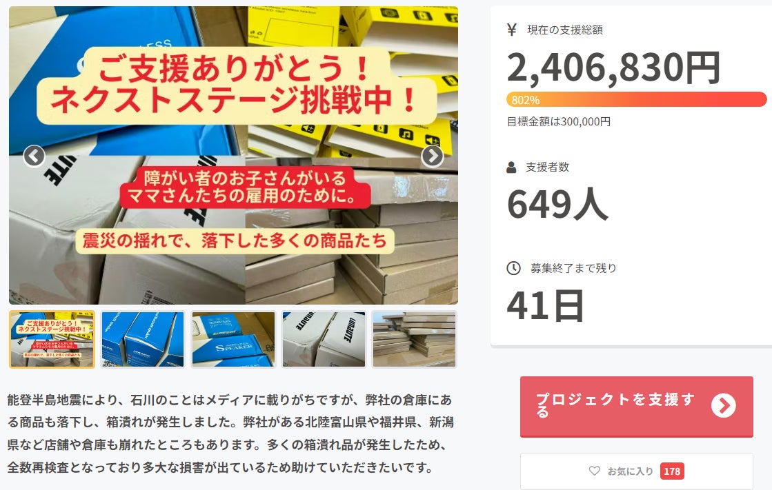 トモスメイカーネクスト株式会社、クラウドファンディング担当者です!ネクストゴールの設定が終わって、現在申請中です。次の目標は【350万円】に設定しました。多くのご支援をいただきましたが、まだまだ頑張っていきたいと思います。引き続きよろしくお願いいたします!