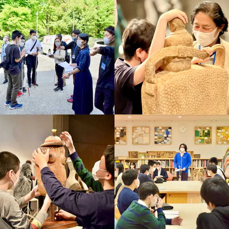 私たち日本彫刻会では、2020年こそ美術館の臨時休館のために断念したものの、2021年・2022年にも独自のプログラムで触れる鑑賞教室を実施してきました。2020年はほとんどの視覚特別支援学校でアートに触れる機会が失われていたため、2021年の鑑賞教室は特別なものとなりました。