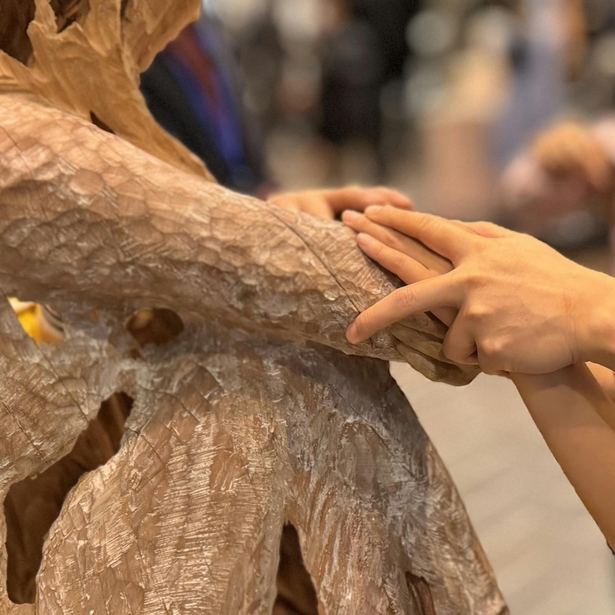 海外に目を向ければ、視覚に障がいのあるアーティストや学芸員が活躍しています。本会では「触れるアート」の可能性を広げるべく、触れる鑑賞教室に加えて、2023年からは盲学校・視覚特別支援学校の子どもたちの作品展示を始めました。活動は少しずつ広がりをみせており、2024年の第53回日彫展では、東京、神奈川、大分の盲学校・視覚特別支援学校からの作品を会場内に展示予定です。