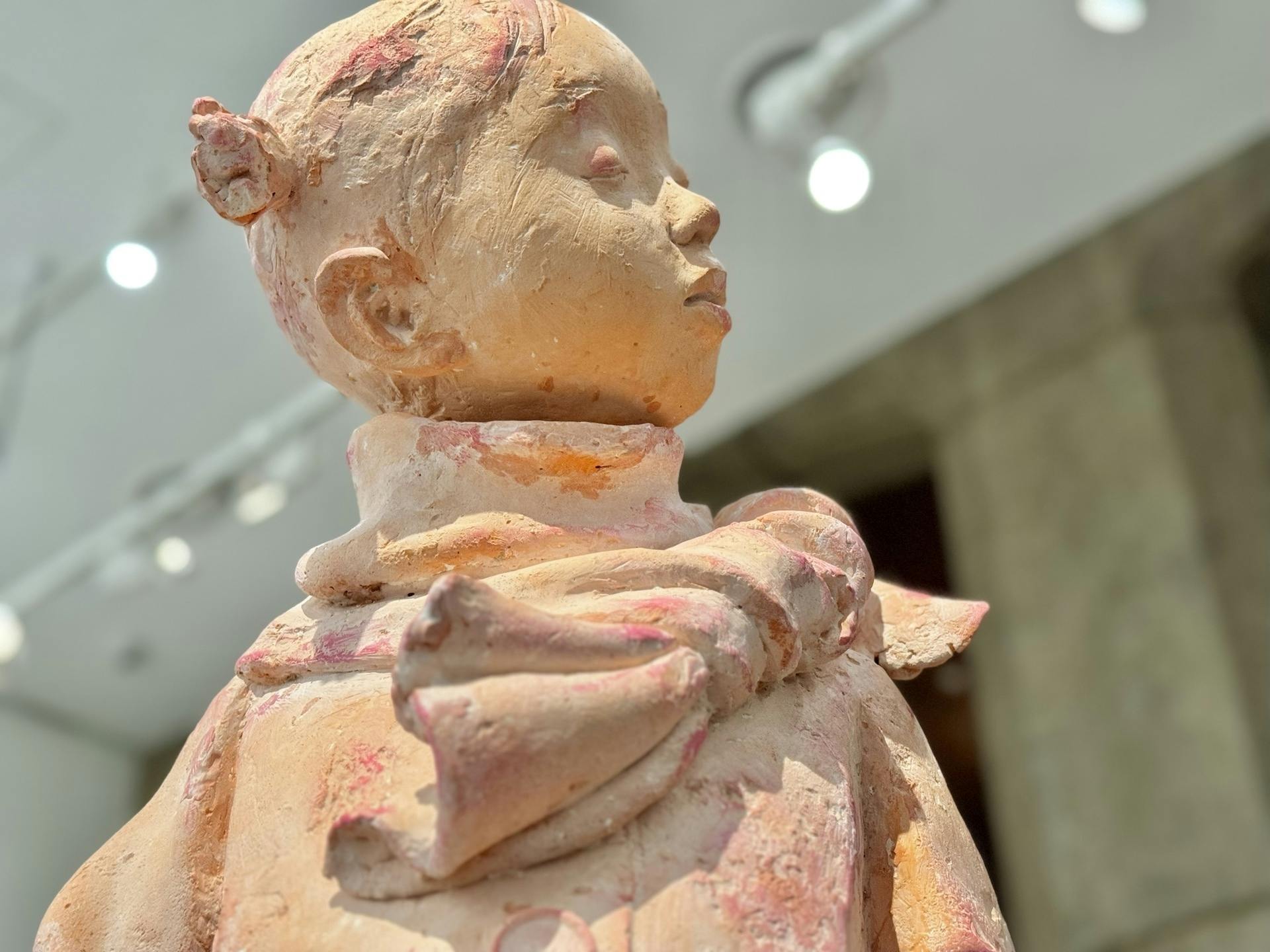 2024/04/29 16:244/23と4/26、今年も「触れる鑑賞教室」を4教室実施しました!触れる鑑賞教室では、一つ一つの作品をじっくりと、長いときには10分以上かけて、手で触りながら鑑賞していきます。今回も子どもたちとの対話を楽しみにしている会員が、全国からたくさん集まってくれました。遠方ではなんと熊本や大分、兵庫、大阪から!会員にとっても、子どもたちと彫刻を共に楽しむ大事な機会になっています。第53回展での鑑賞教室の様子(2024年4月26日)色々な素材による様々な題材の作品たち。みんな自分のお気に入りの作品を見つけてくれました!そんな中でも、特に人気だったのが、山本将之会員による《ベイビーハーフ》!そのほっぺは「まるい」という言葉だけでは表しきれないぷっくり感です。《ベイビーハーフ》陶山本 将之 もっと見る