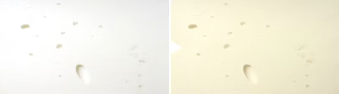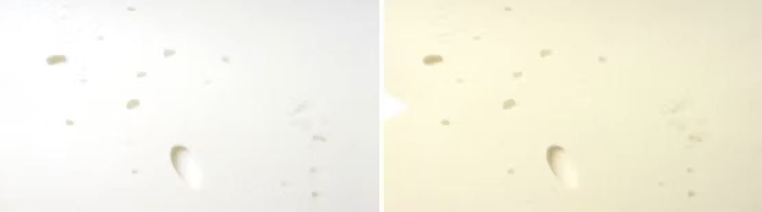 ●メモリーフォームに生じる小さな気泡は、原料を金型に注入するときに発生する気泡が上がってきて生じる自然な現象です。機能上は全く問題ありません。また、時間の経過ととも黄色に変色する現象も同様に、自然な現象で機能上は全く問題がないので初期欠陥に該当しません。