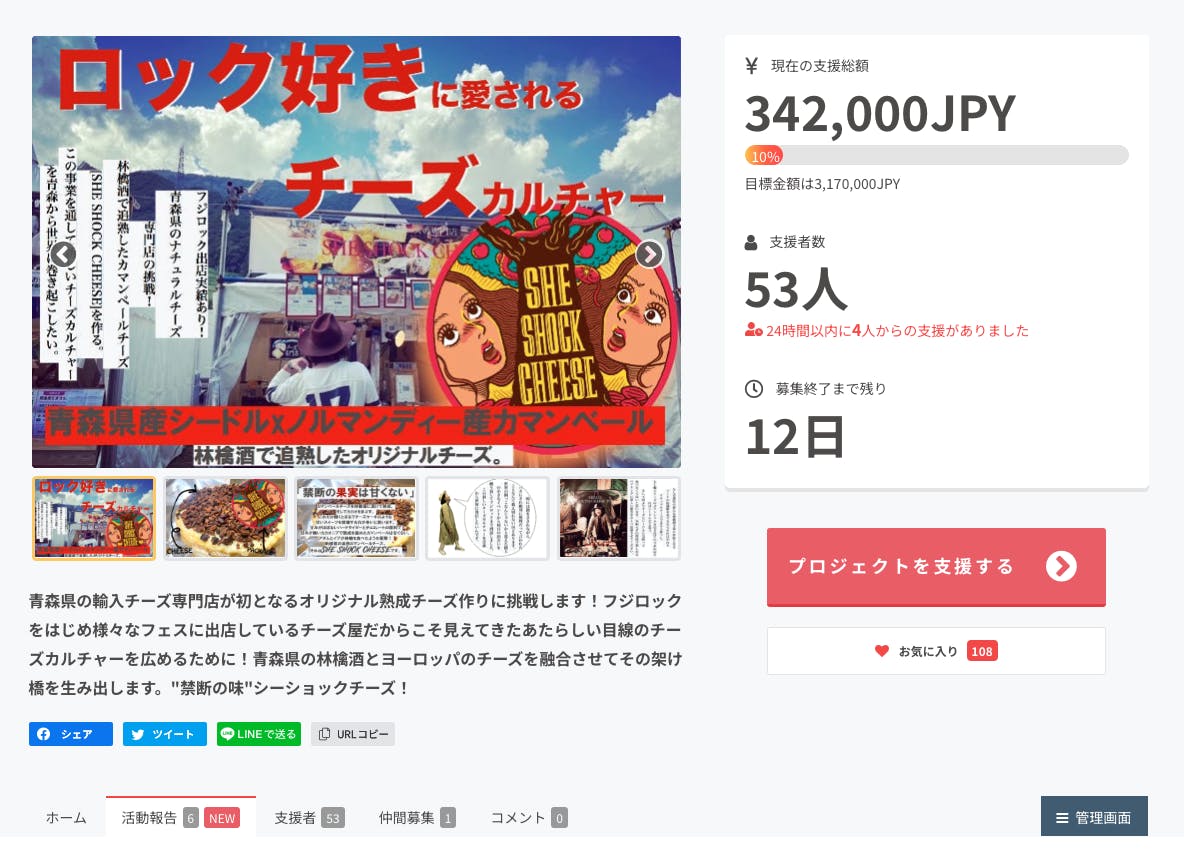 クラファン開始から1週間弱が経過し、現在34万円を突破。支援者数は53人。お気に入り数はなんと108人!