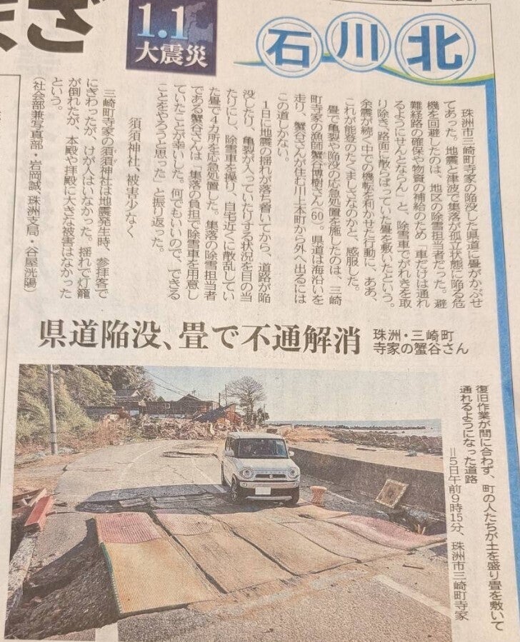 2024年元旦の能登半島地震。すべてを流された蟹谷さん。でも自らのことは顧みず、直後から休むことなく町のために道路を修復し、集会所に簡易の風呂を設置し、さらに被災者の面倒をもみる。