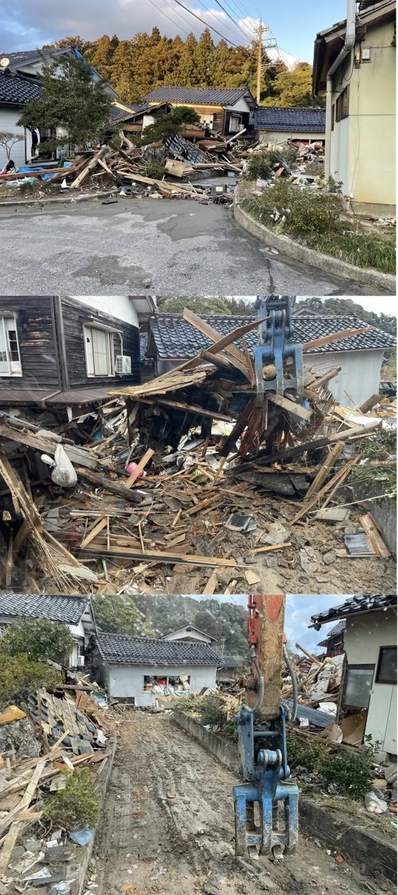今日は少しずつ重機で瓦礫をどかし
