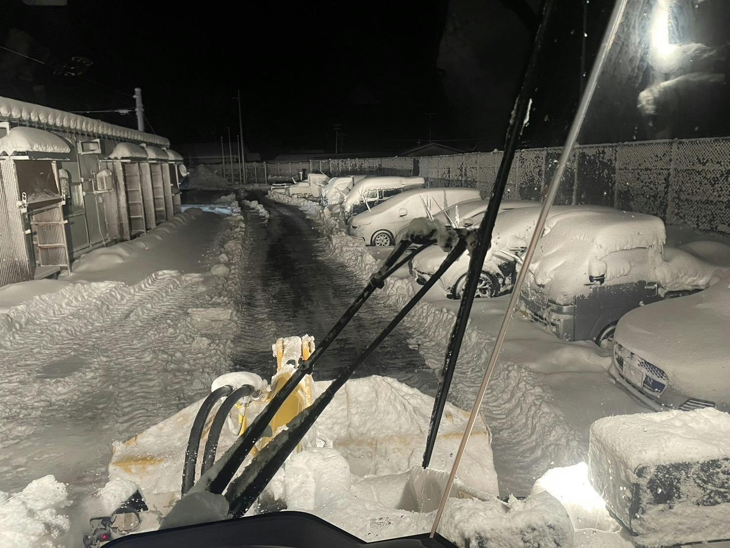 先日、蟹谷さんは漁に出たときにロープが目に当たり、角膜を傷つけた。角膜剥離を起こし、失明寸前で手術。未だ片目のが癒えないところに持ってきて、珠洲市も42センチの積雪を記録。連夜、道路に積もった雪を片目にもかかわらず蟹谷さんは出動する。