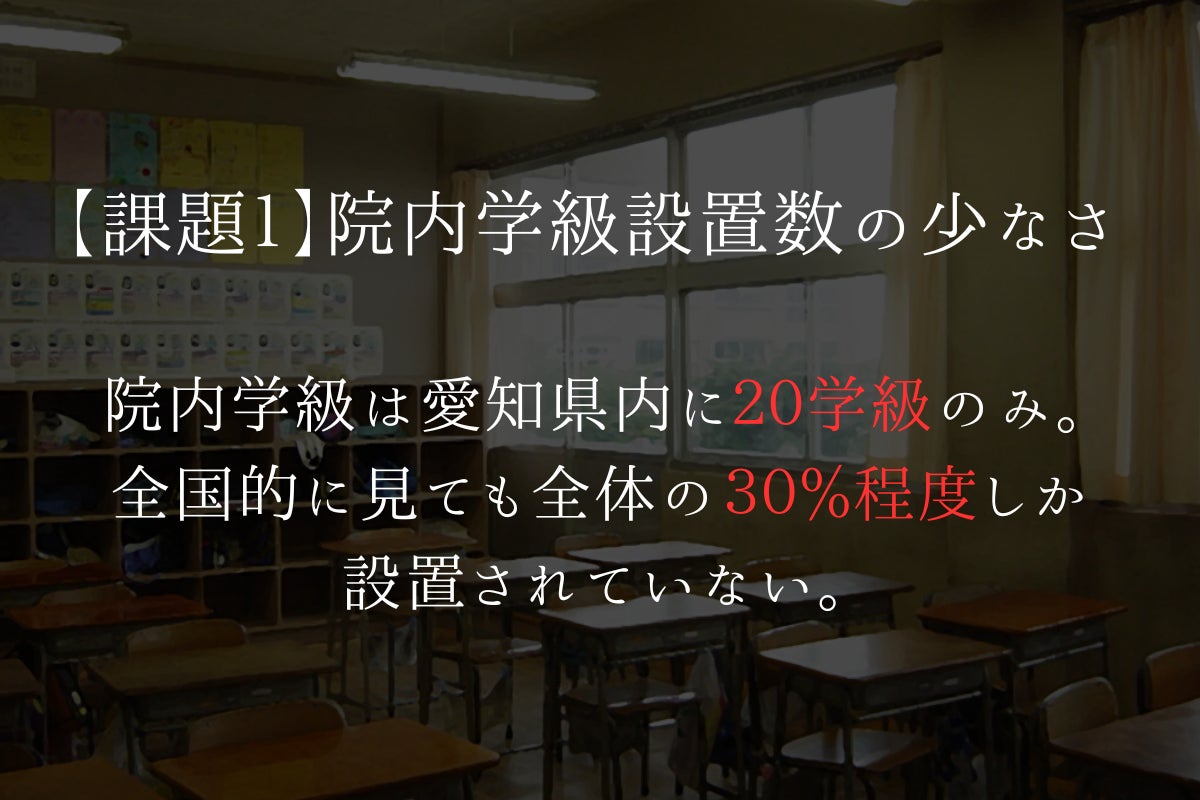これは愛知県に限った話ではなく、全国規模で見ても院内学級が設置されている病院は少なく、全体の30%程度しかありません。そのため、そもそも院内学級がない病院に入院している子どもたちは数多くいます。