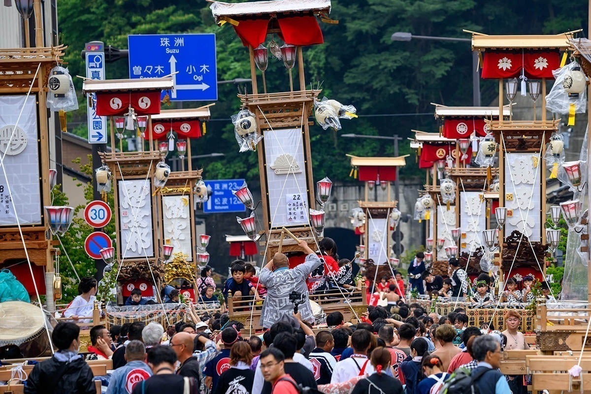 約40本ある「キリコ」。この日を待ちわびた老若男女だれもが笑顔です