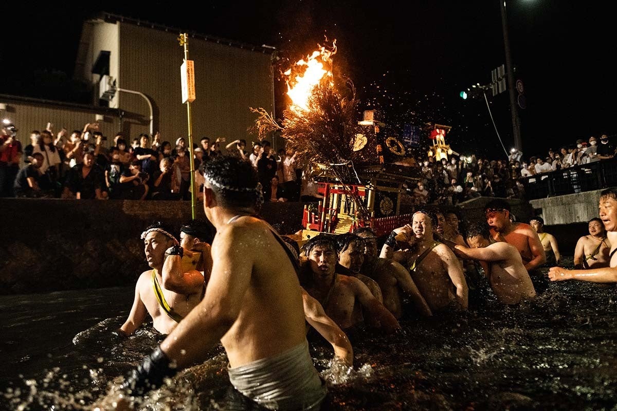 川の中では大松明の下で火の粉を浴びながら暴れます