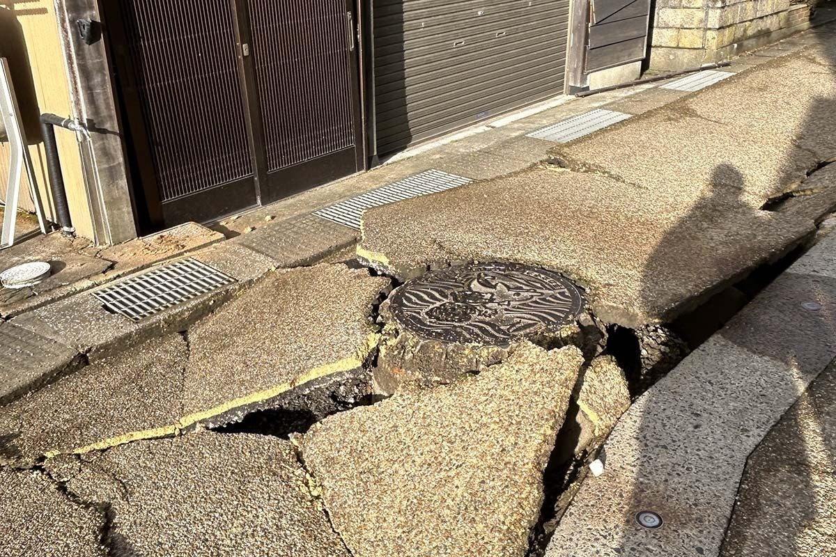 「あばれ祭」が行われる能登町宇出津においても、津波が押し寄せ、車を流し、いたるところで道路が地割れし、マンホールが突き上げられ、建物も倒壊しました。