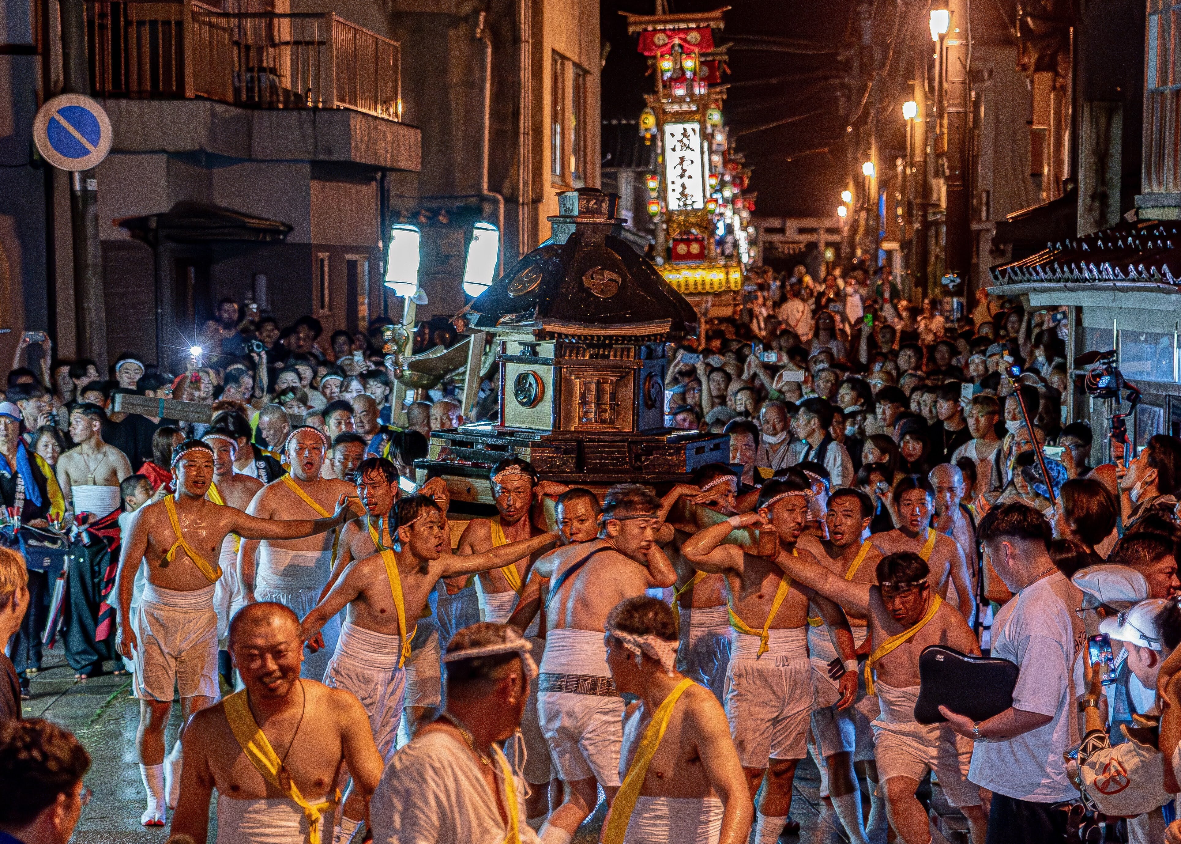 最後に八坂神社境内でクライマックスとなります昔から地元を離れる人には「祭には帰って来いやぁ」と送り出し、また離れた人も増えた家族や友人を連れて祭の日には帰って来る。迎える人も来る人もそれを楽しみにして一年を過ごす。そのような心のよりどころとなっている祭りです。